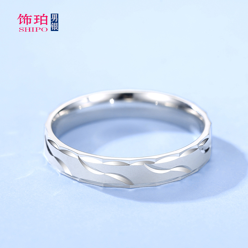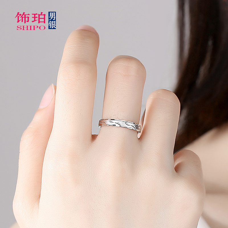 925纯银戒指男士单身 个性时尚简B约指环 韩版学生尾戒女小指ins