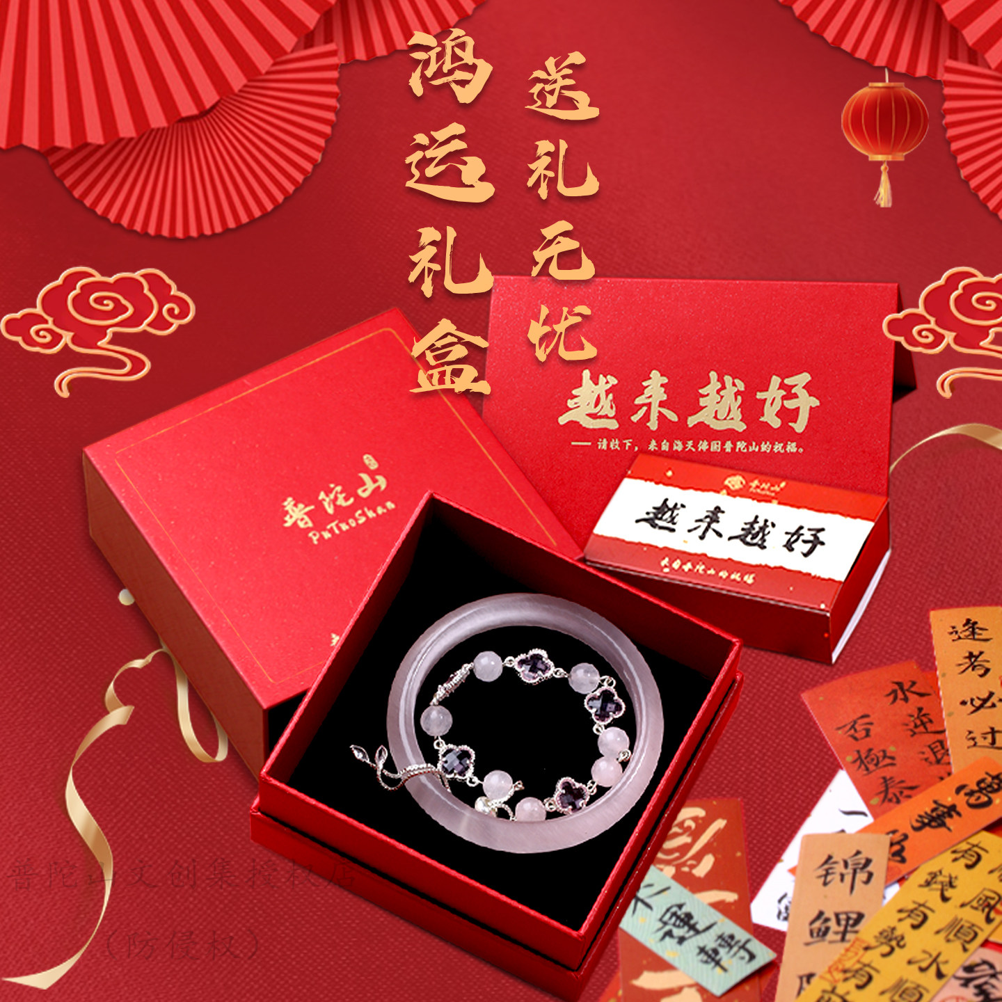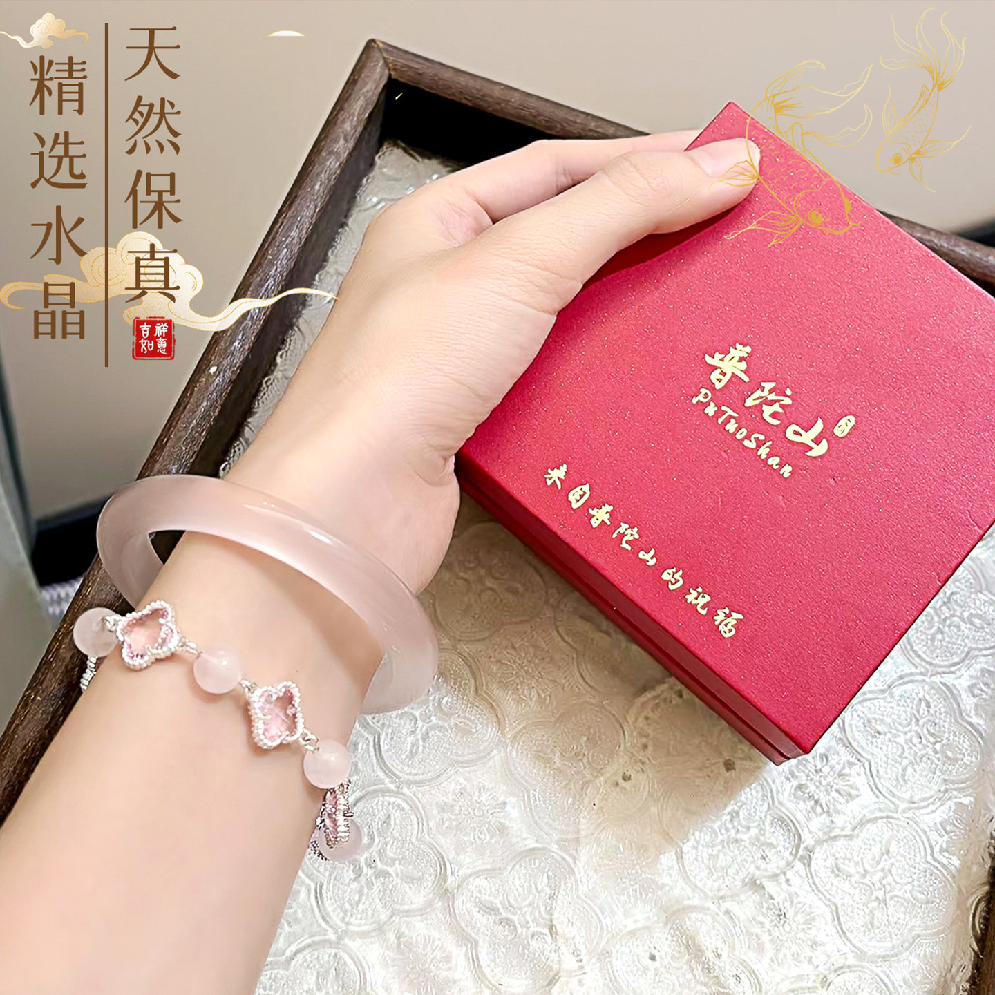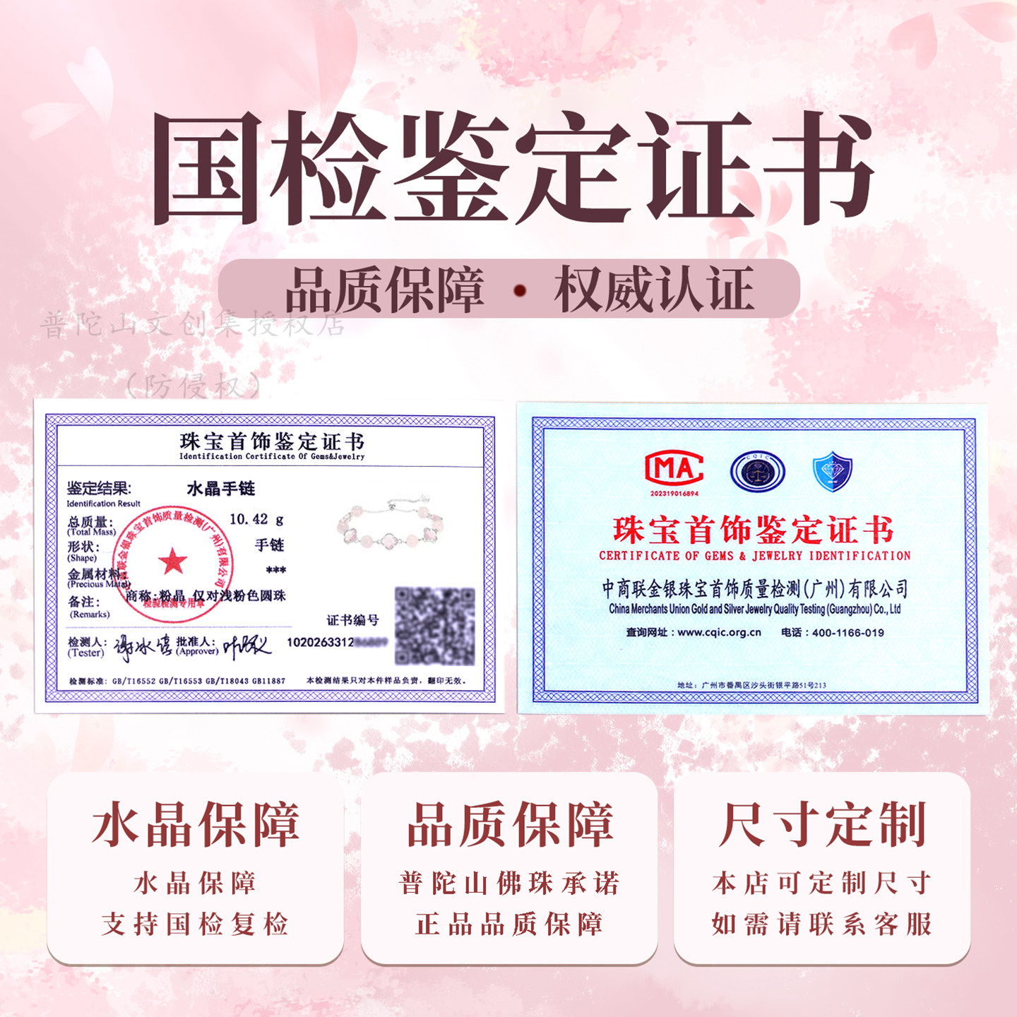 普陀山文创集授权店四叶草手链水晶女马粉粉黛佳人新中式猫眼手镯