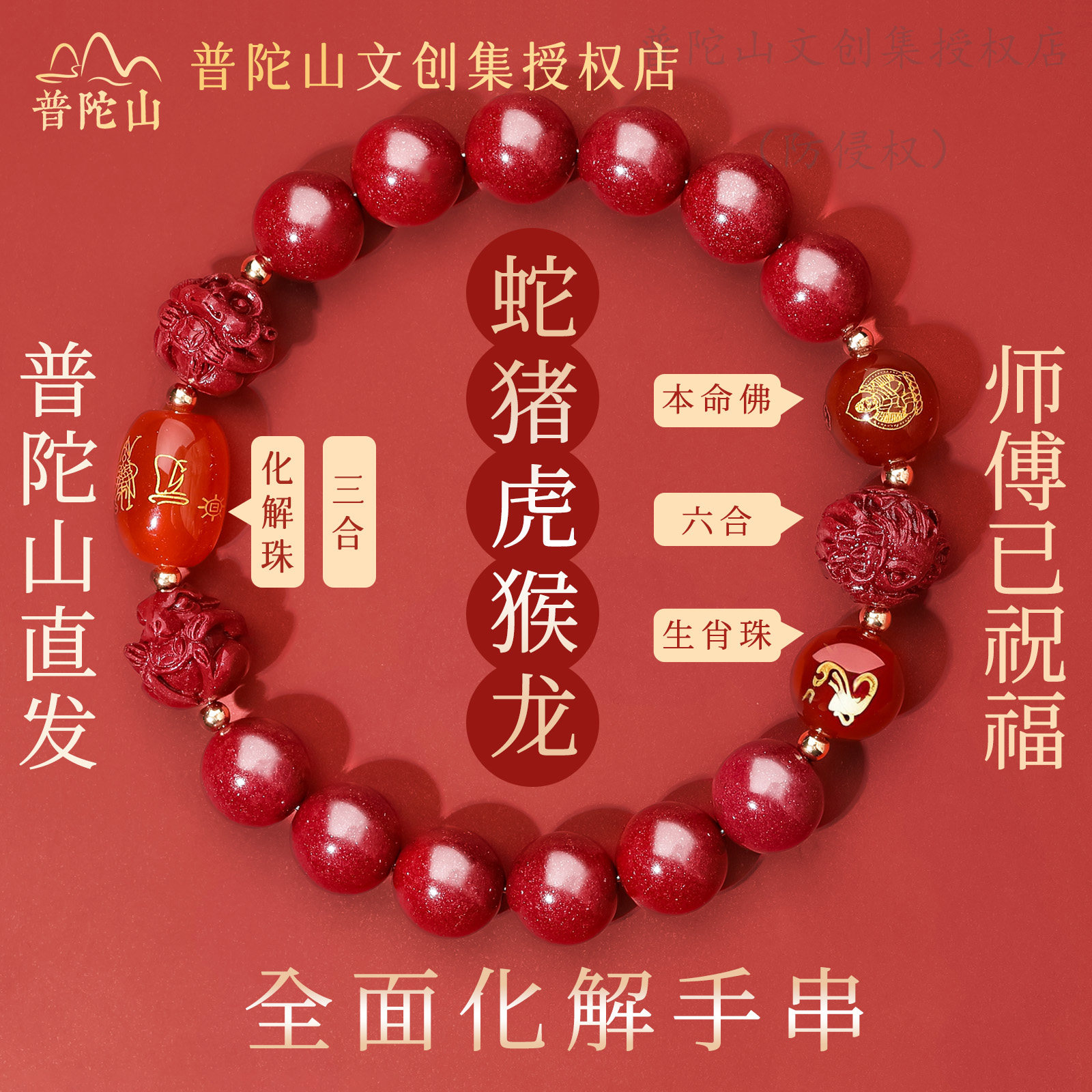 普陀山文创朱砂手串本命年太岁三合六合2026年马年手链官方旗舰店
