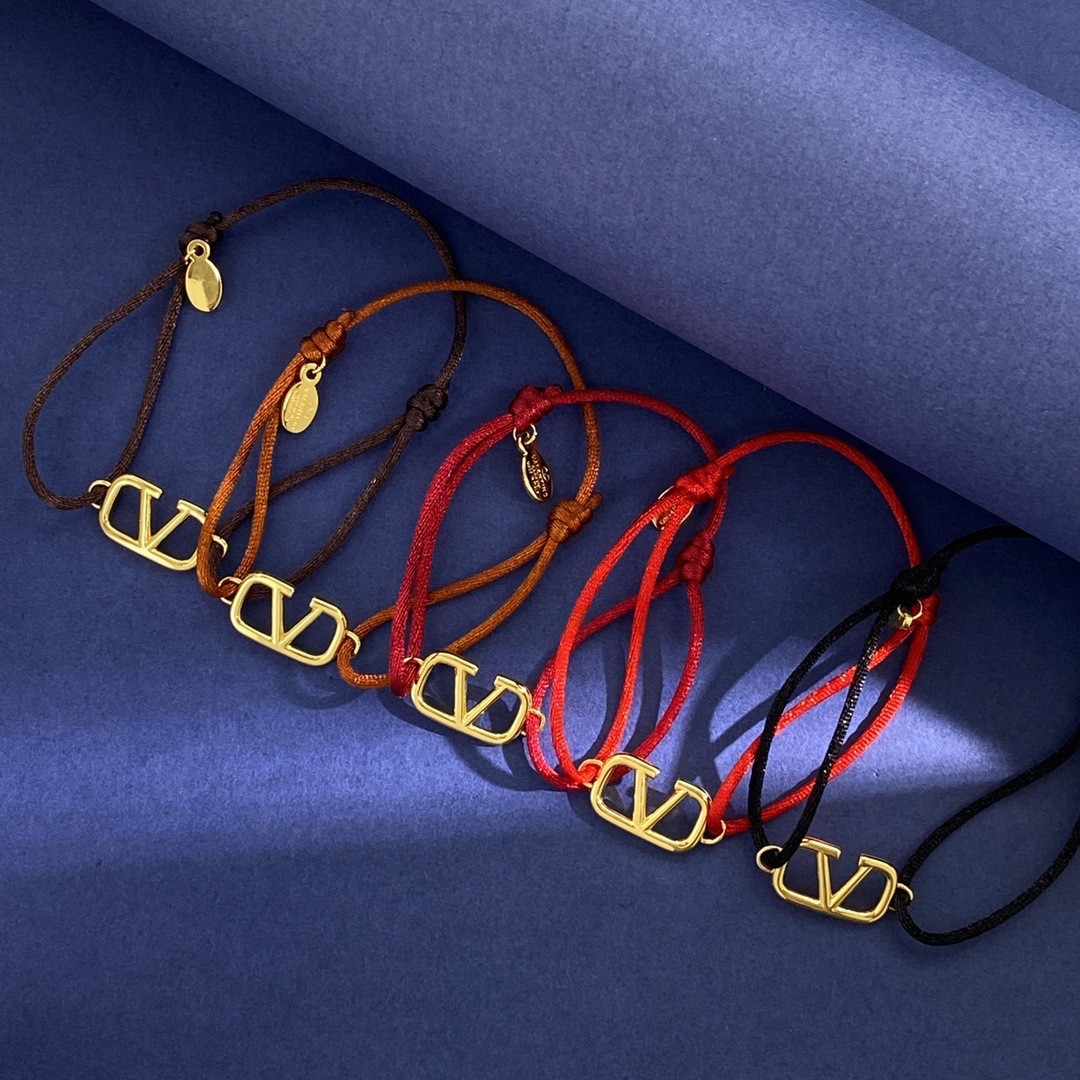 弧面光面V字母标志镂空长方牌伸缩幸运绳多色手绳手工绑扎手饰