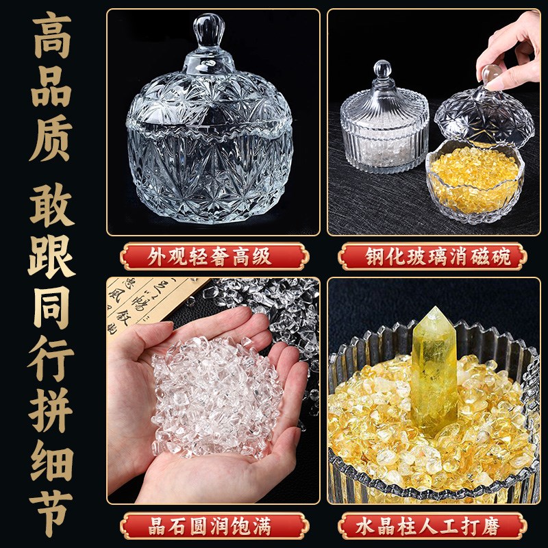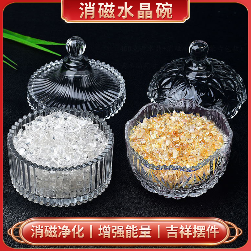 水晶净化消磁碗摆件手链消磁石饰品收纳容器Q天然白水晶碎石器皿