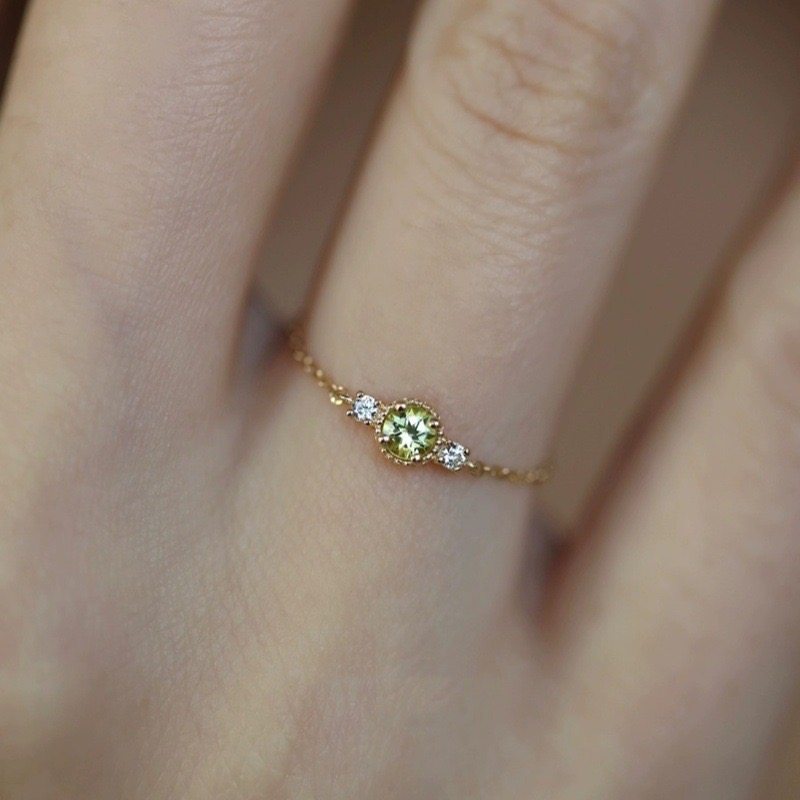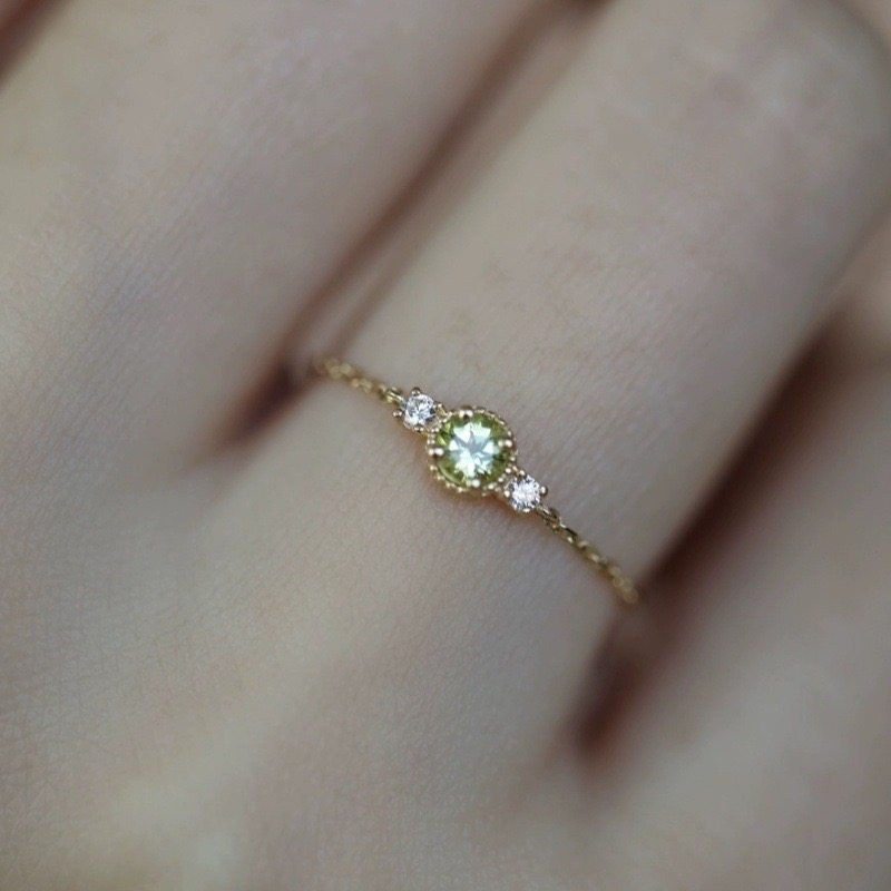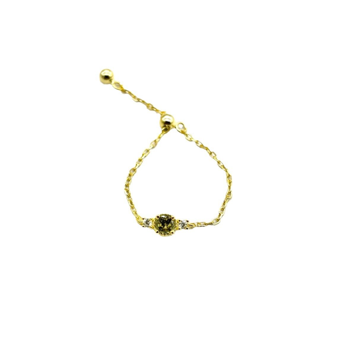 纯银镀14K金橄榄石转运珠小金豆链条可调节软戒指女日系小众设计