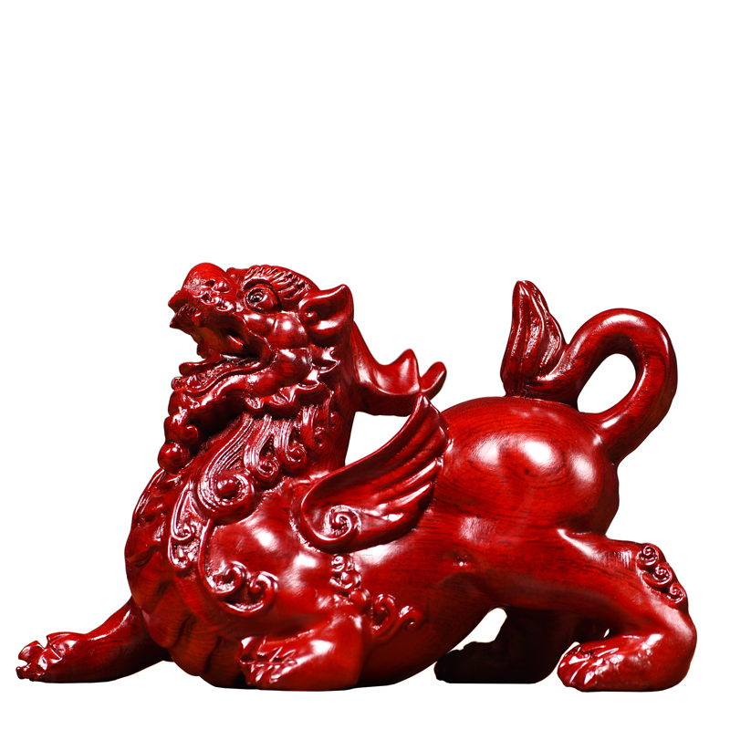 红花梨木雕貔貅摆件新中式实木皮丘一对家居客厅办公装饰工艺礼品