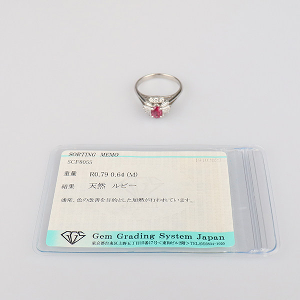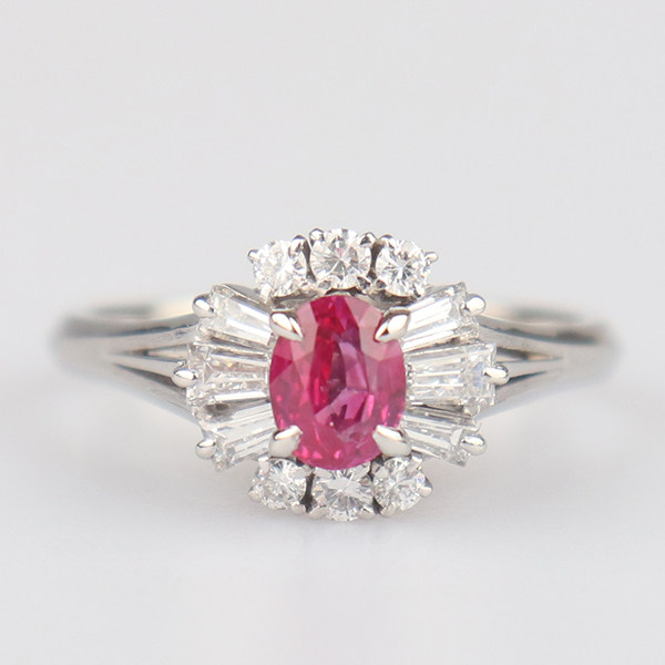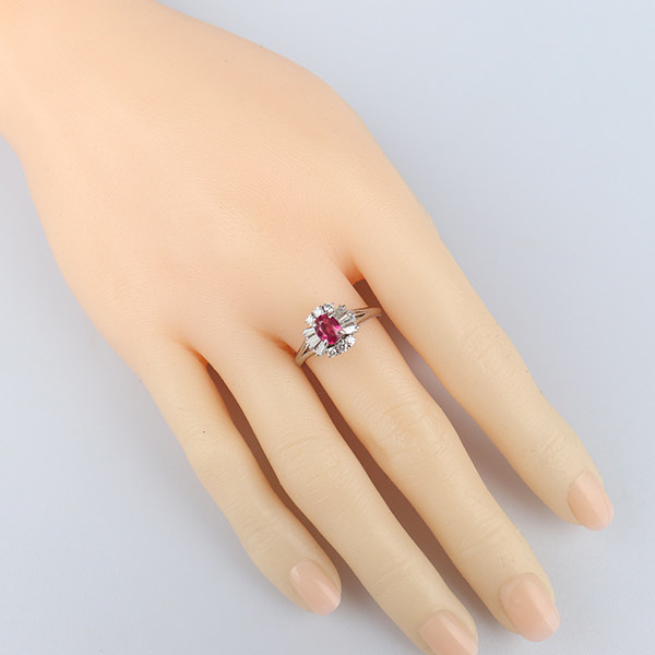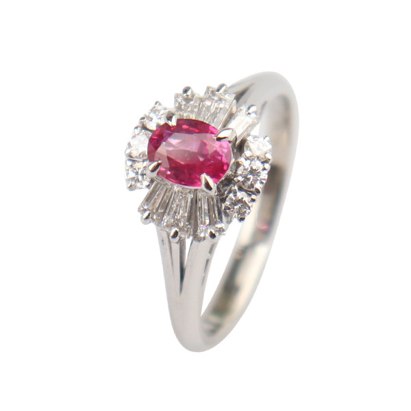 中古95新日本进口商品椭圆型切工钻石红宝石铂金90056号戒指