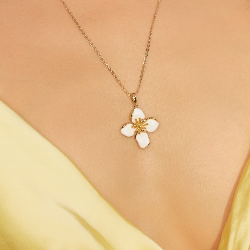 【女神礼物】RC Retro Chic意大利复古时尚首饰 白色四瓣花吊坠
