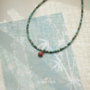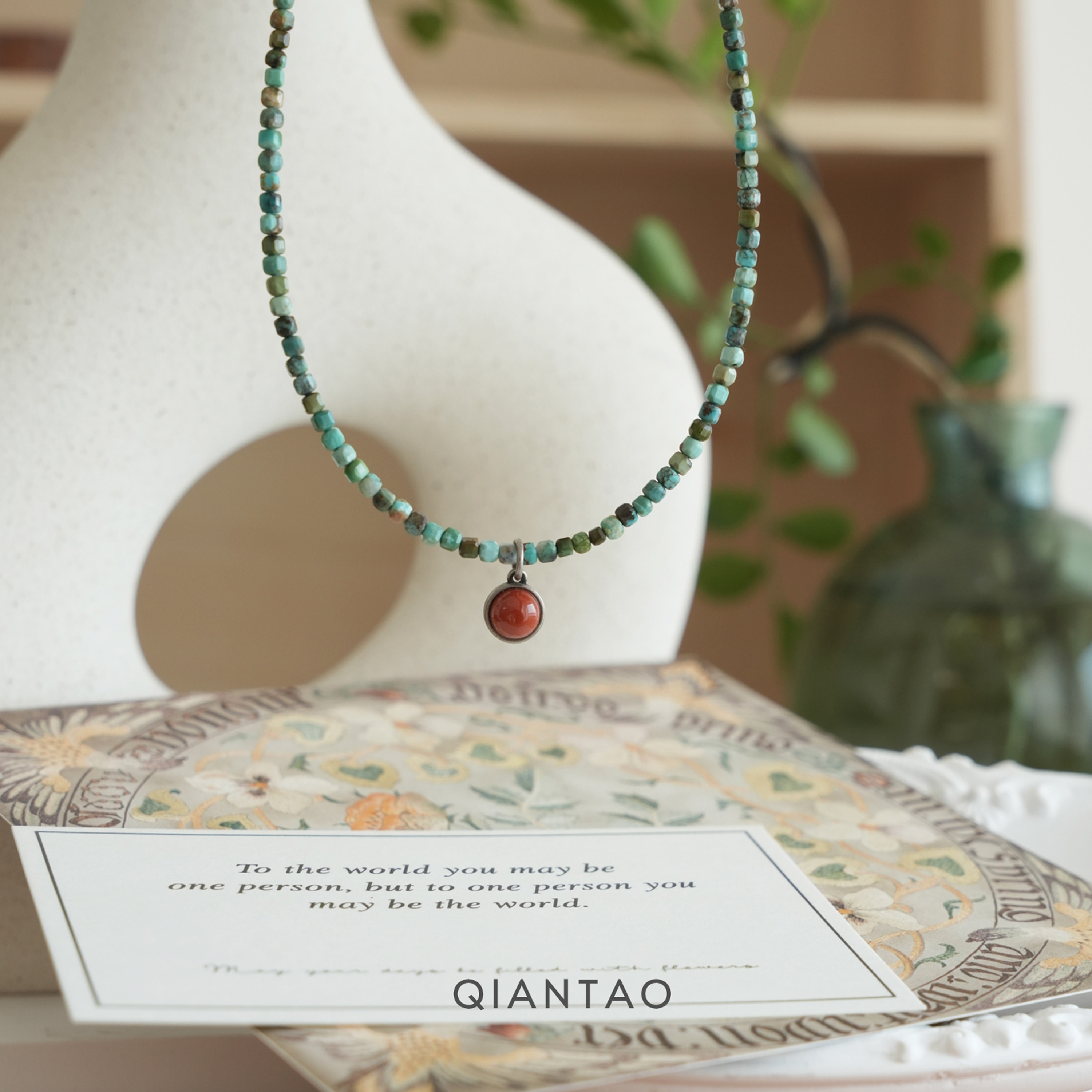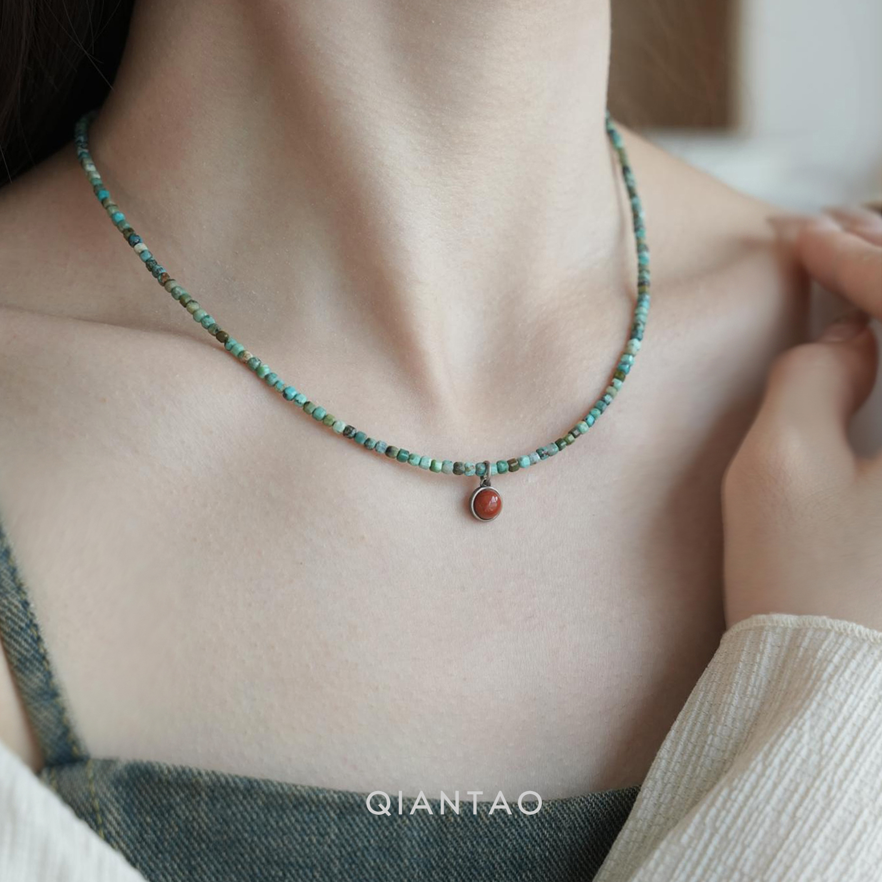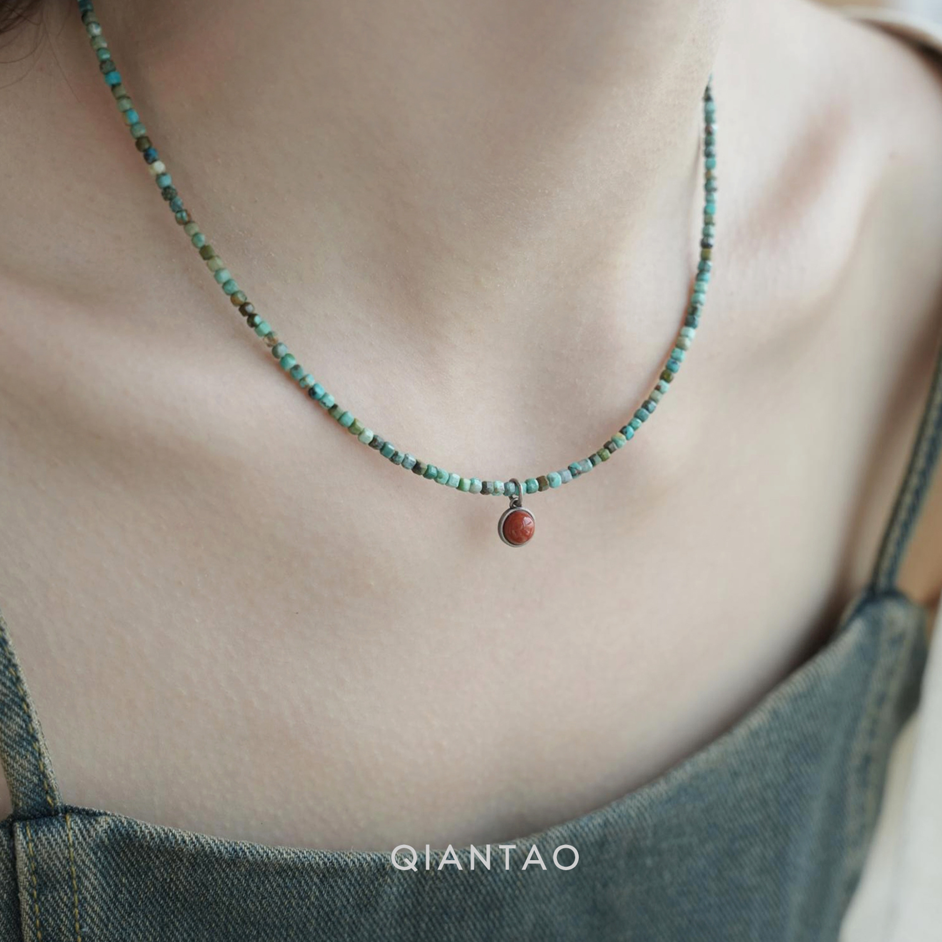 QIANTAO「暖翠」原创天然绿松石微沁项链925银南红吊坠锁骨链礼物
