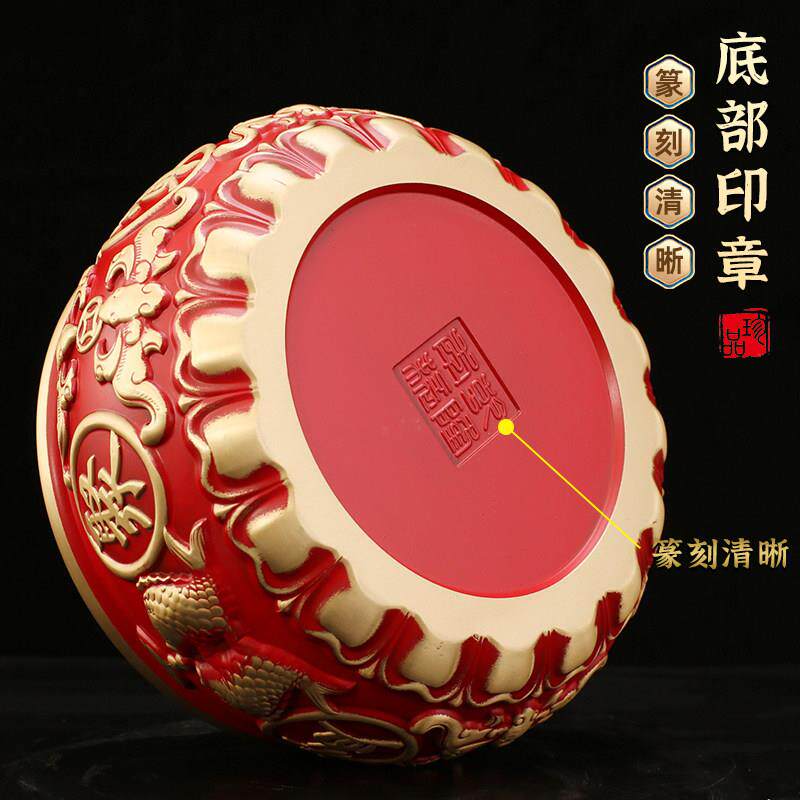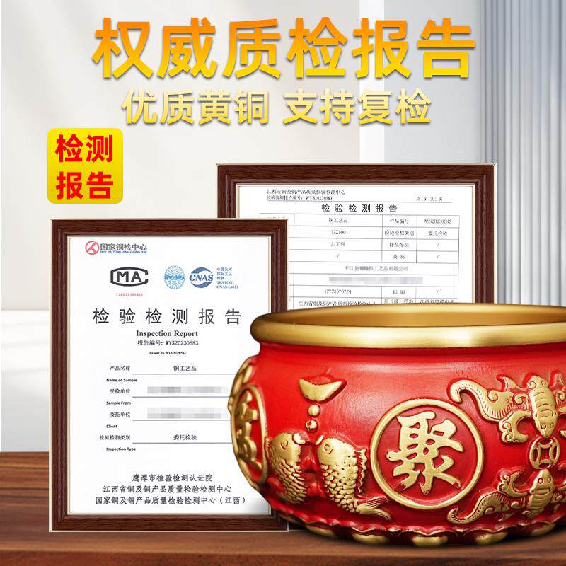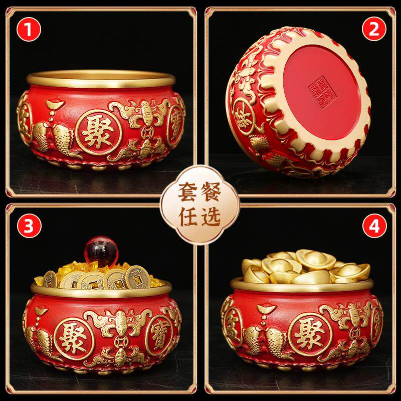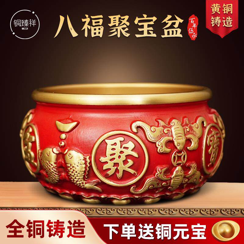 红色聚宝盆黄铜摆件家居八福招财玄关客厅电视柜办公黄铜米缸全铜
