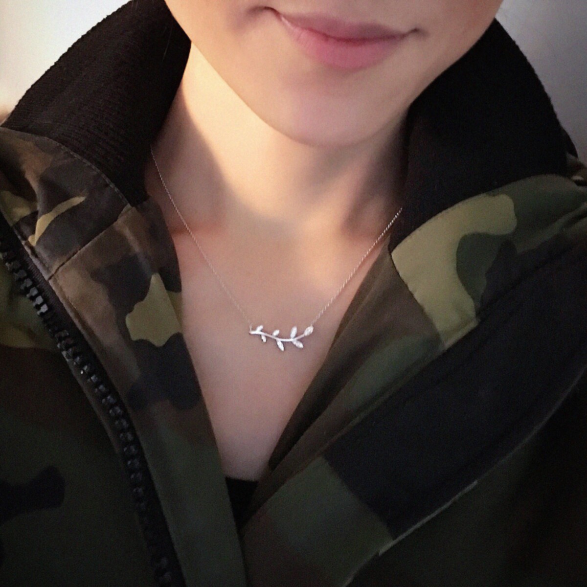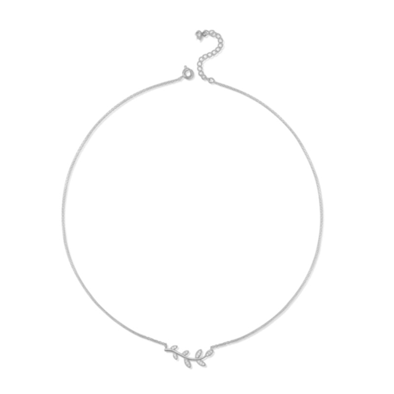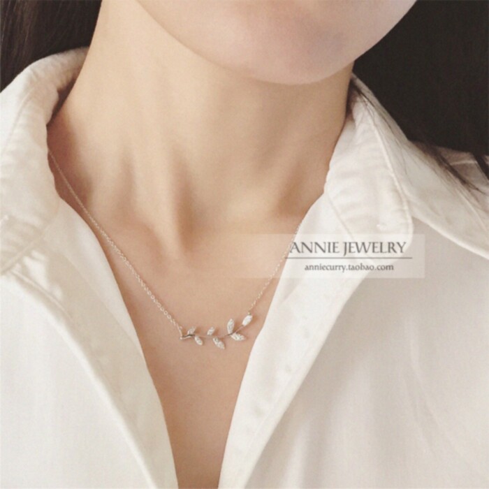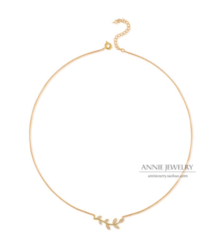 加拿大橄榄枝项链 女纯银镀18K黄金树叶子锁骨链钻石简约气质礼物