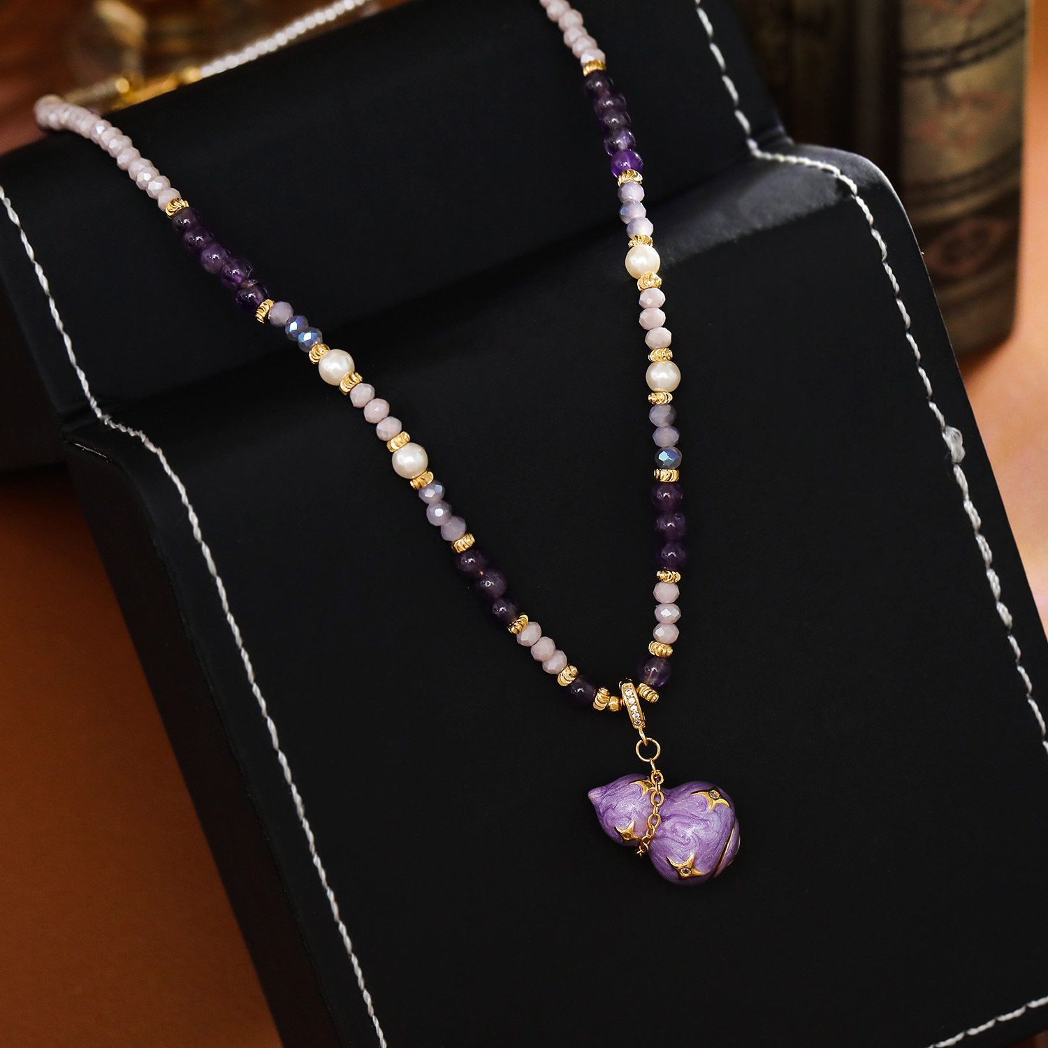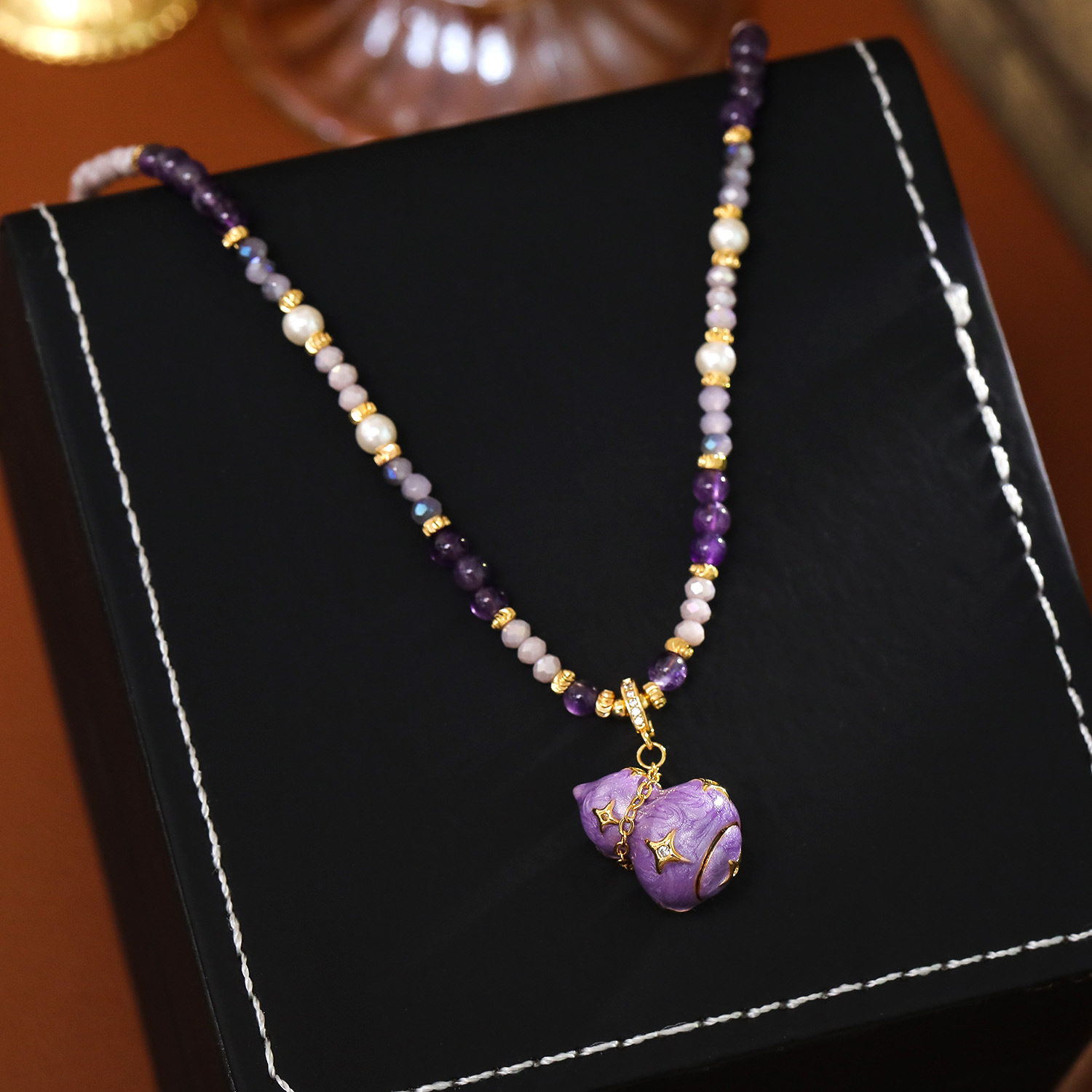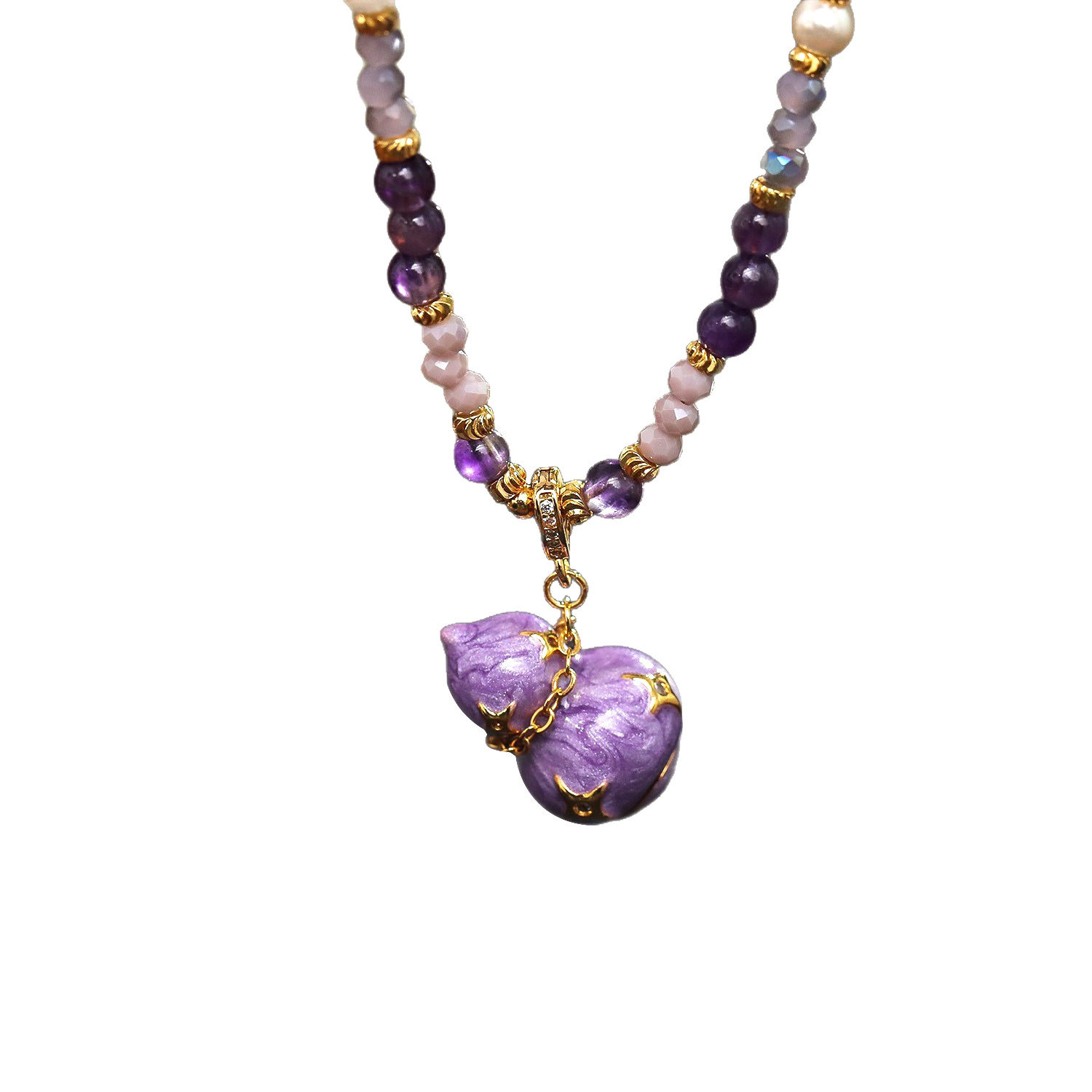 新中式复古珐琅紫葫芦吊坠串项链女长款珍珠毛衣链国潮精致锁骨链
