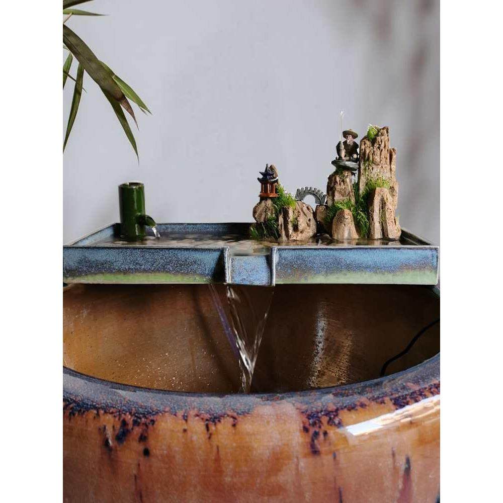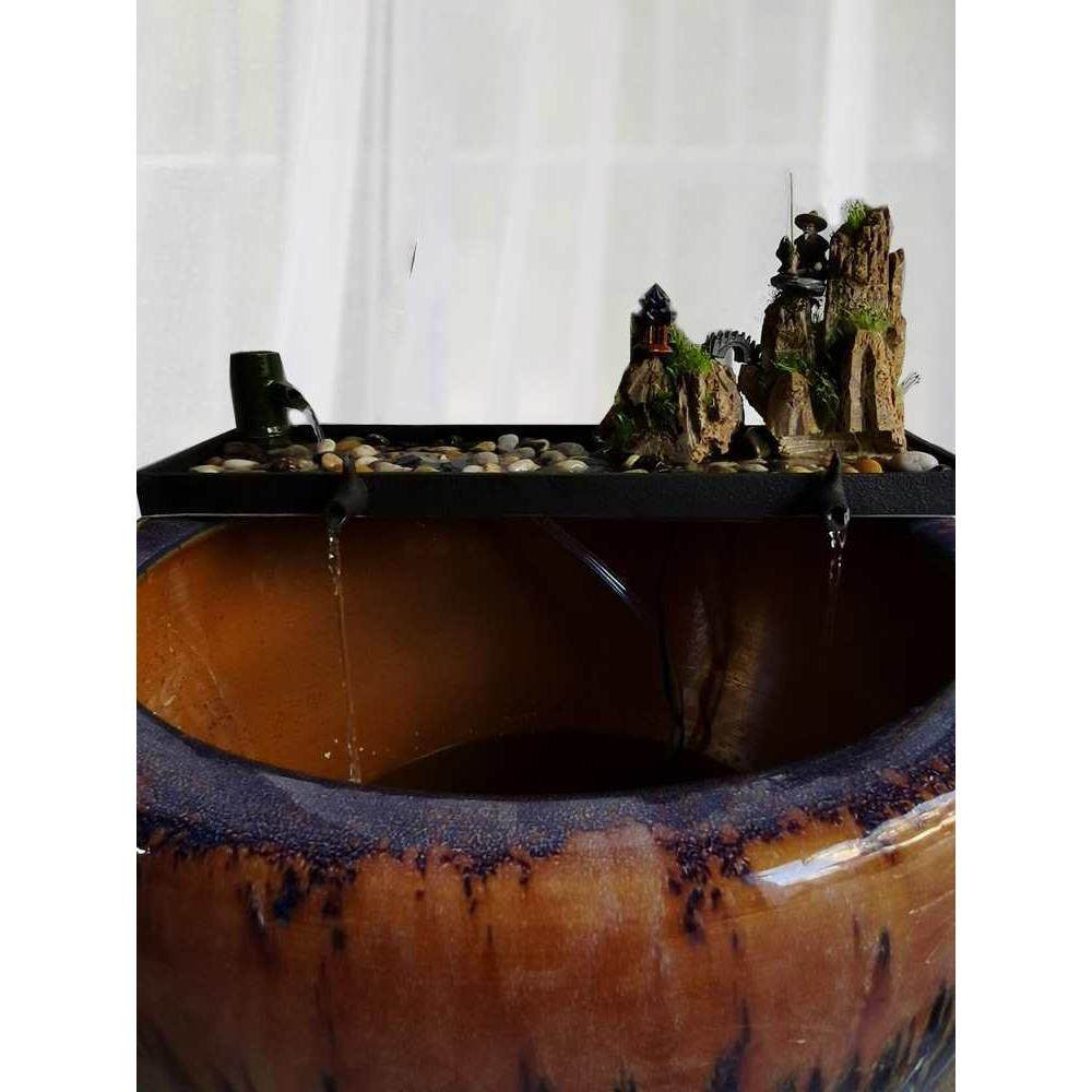 陶瓷鱼缸流水摆件循环过滤养鱼配件大型石磨假山喷泉庭院水景