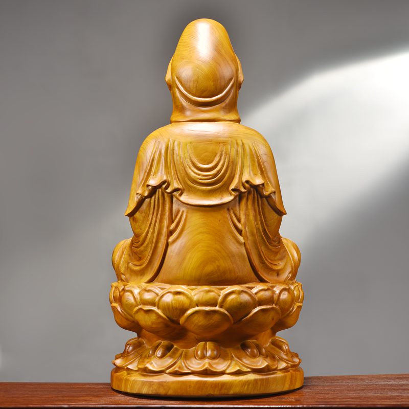 香樟木雕观音菩萨佛像摆件实木南海坐莲观世音家居客厅玄关装饰品