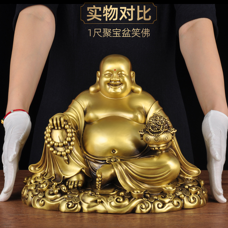黄铜弥勒佛摆件笑口常开大肚佛笑佛寺庙供奉家居客厅玄关装饰品