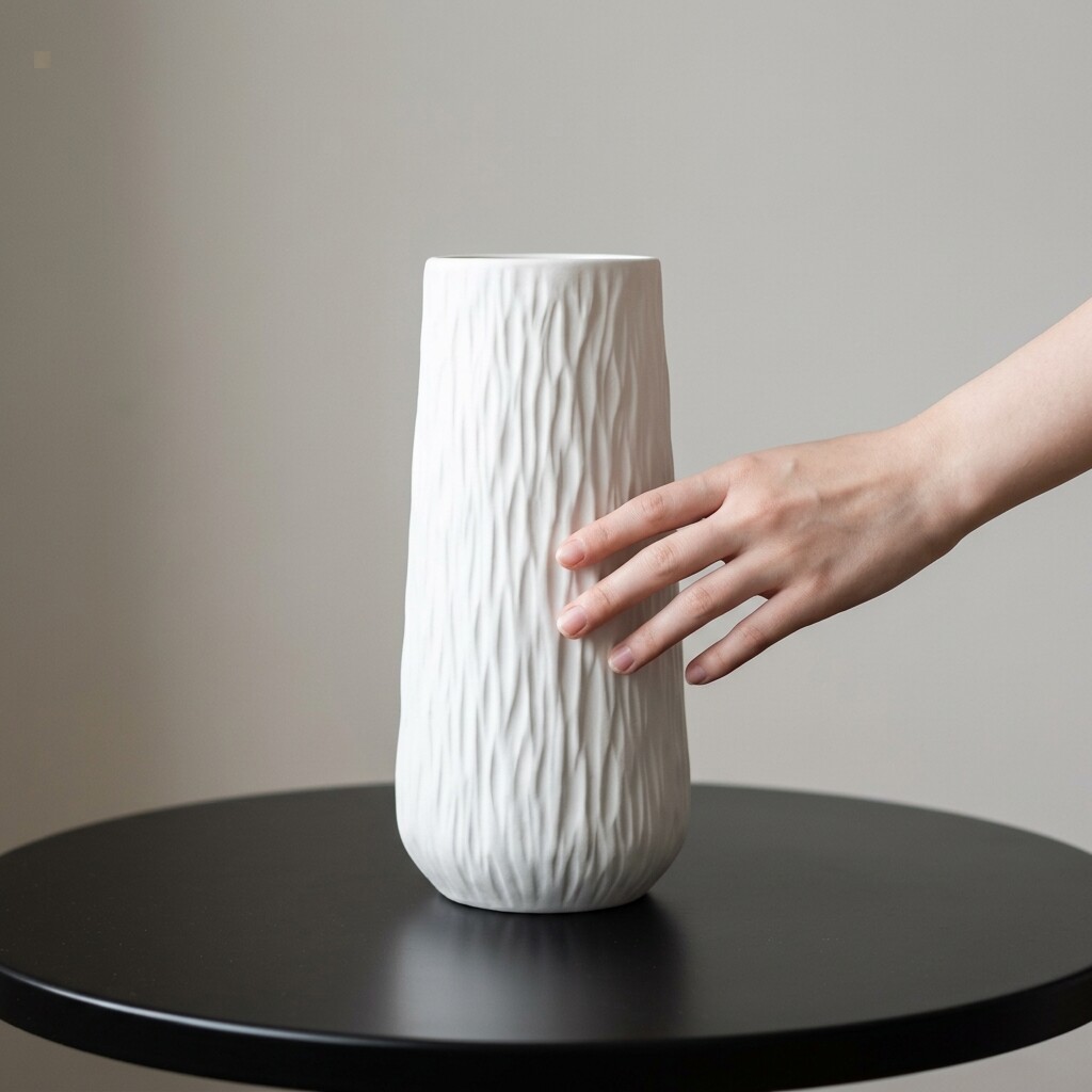 简约白色纹理陶瓷花瓶家居装饰摆件松弛慢人风