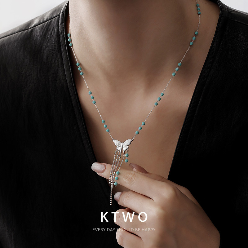 欧式潮ins新款银色蝴蝶项链女小众流苏设计时尚冷淡风锁骨链配饰