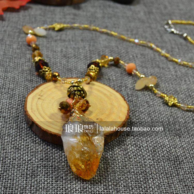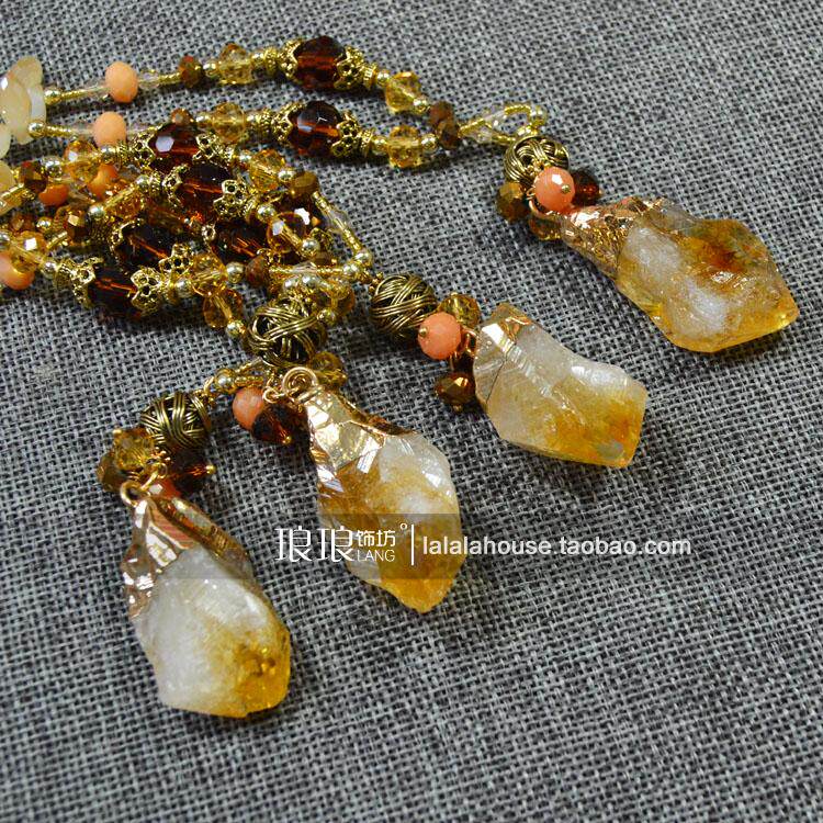 原创设计新品水晶串珠吊坠长款项链 复古简约挂件毛衣链配饰礼物