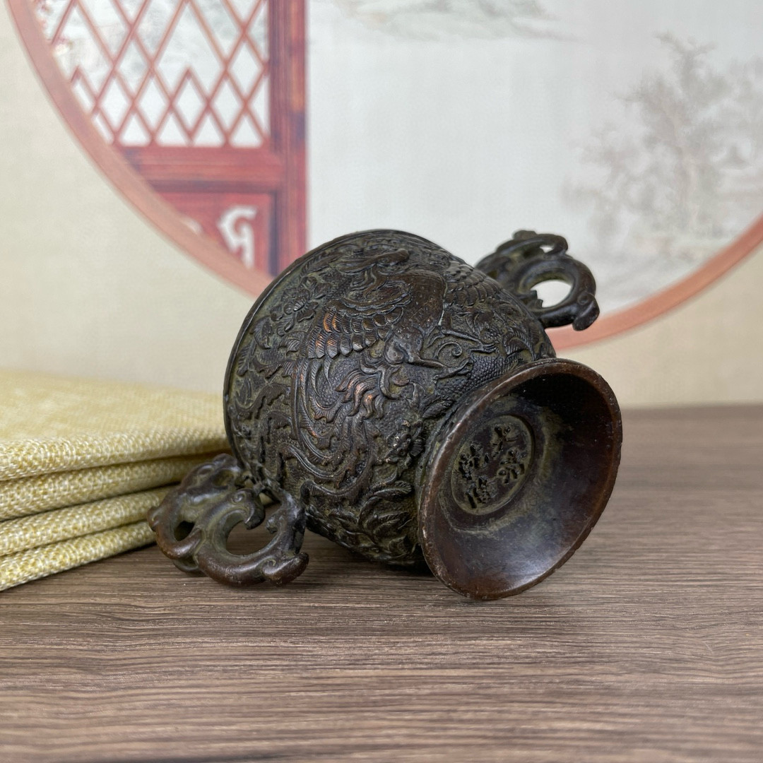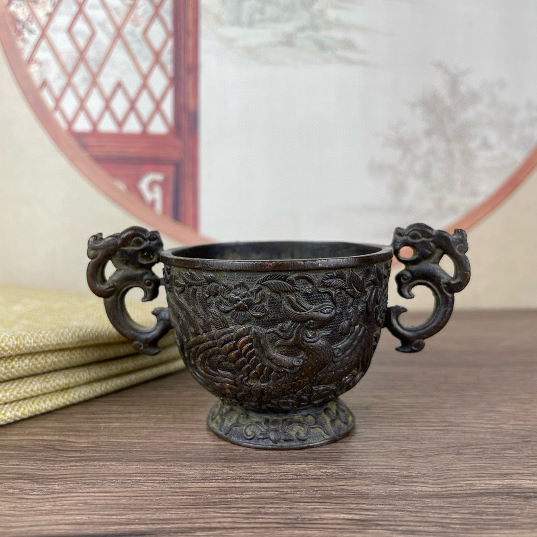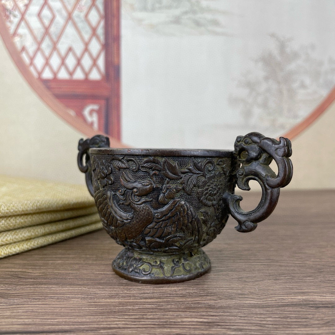 古玩老包浆大明乾隆双凤龙杯包浆醇厚珍品老物件古董收藏礼品