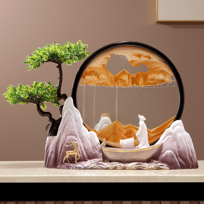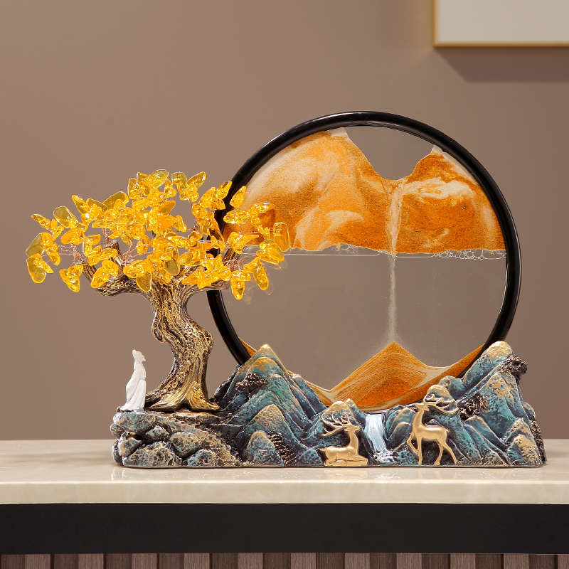 新中式国风文创发财树流沙画摆件玄关书房办公室装饰品教师节礼物