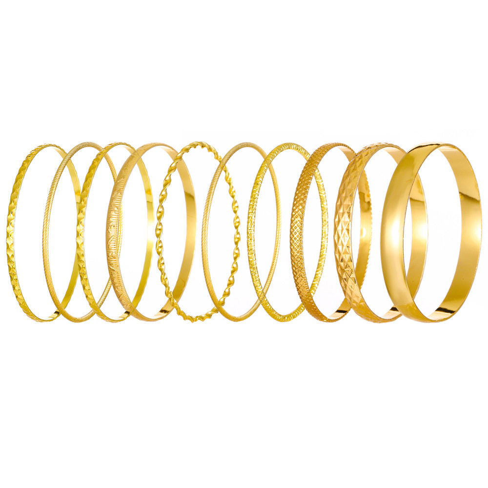 Vintage wide bracelets gold smooth bracelets of 10 pieces