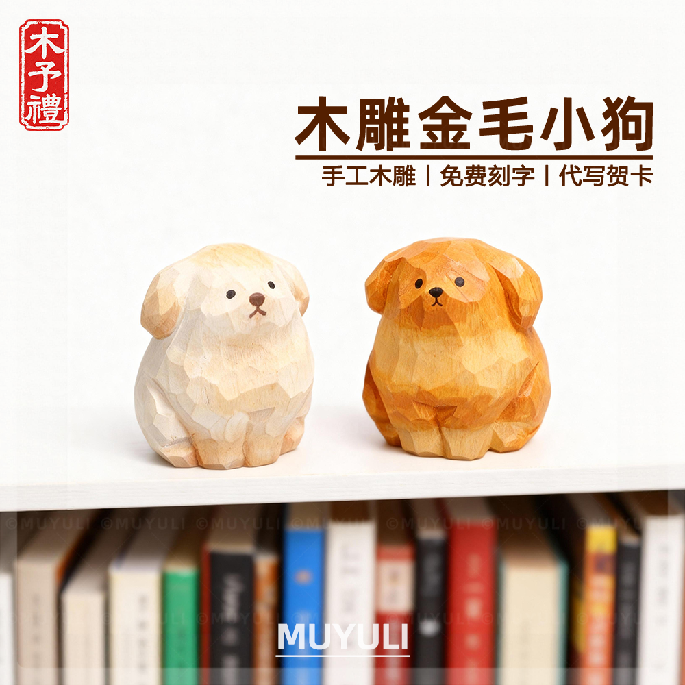 手工木雕丨金毛小狗摆件送男女生女孩闺蜜圣诞节礼物生日毕业礼物