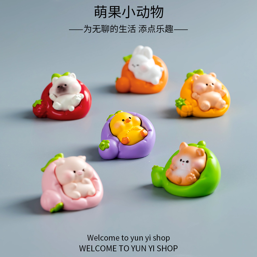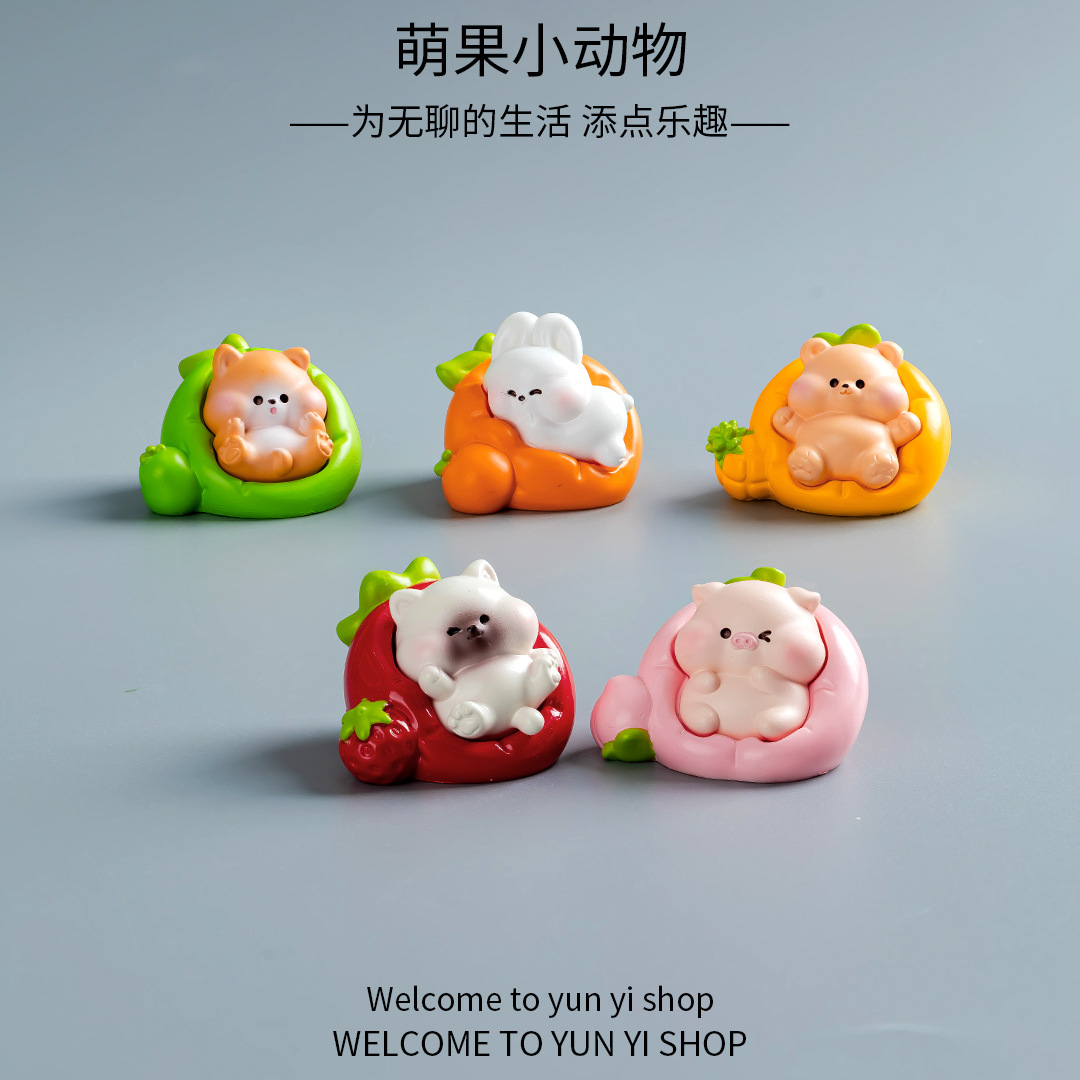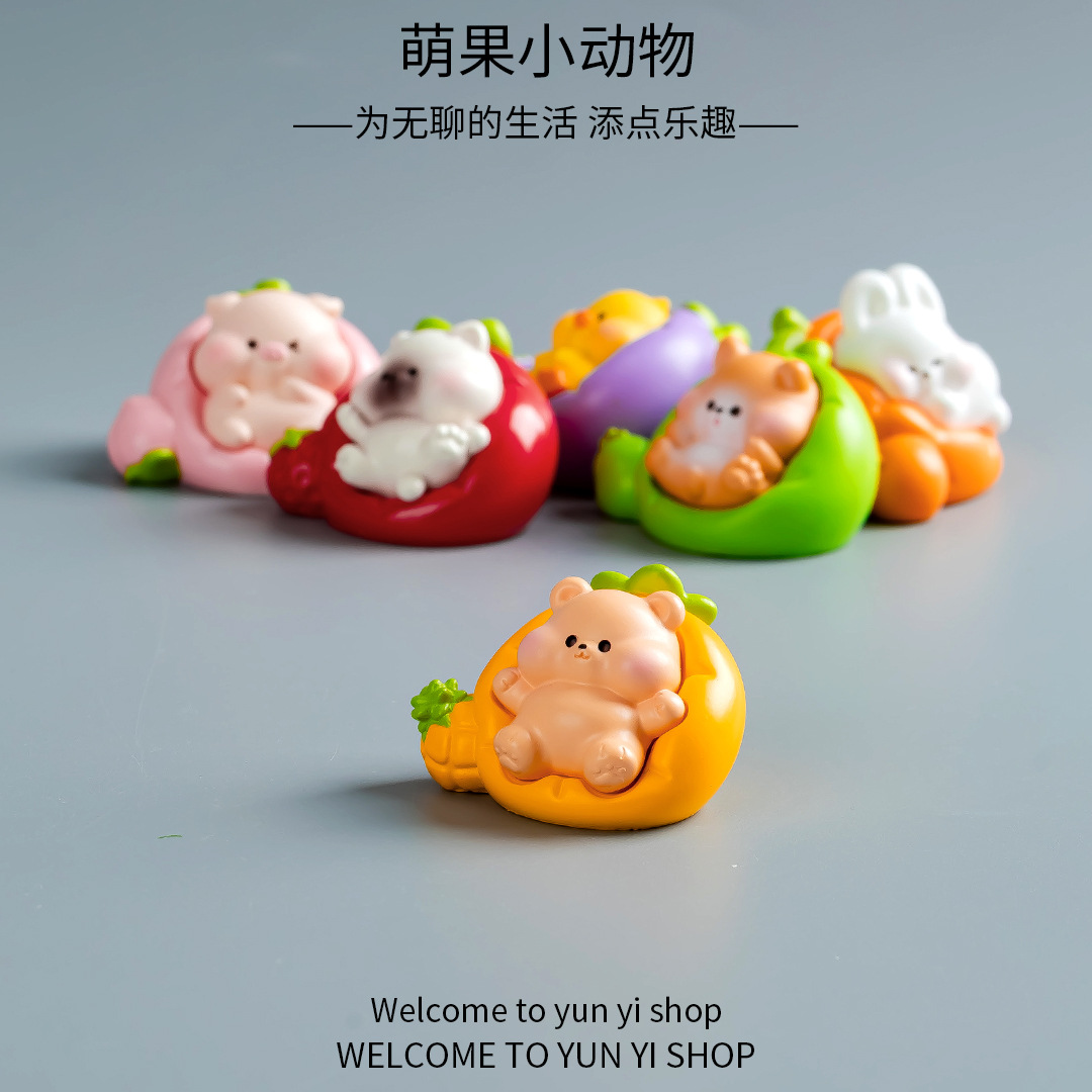 创意萌果萌粒小动物公仔 微景观DIY装饰品盲袋配件汽车载小摆件