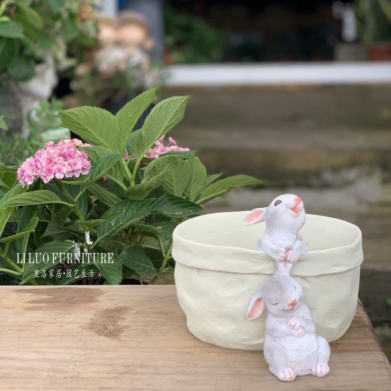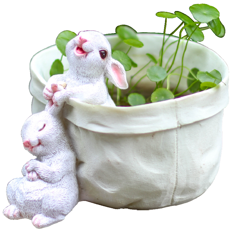 口袋小兔子收纳花器多肉花盆萌可爱花园装饰桌面摆件创意礼物品