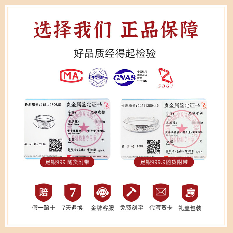 龙凤首饰套装9999纯银手镯妈妈款实心银戒指老年人实用礼物送长辈