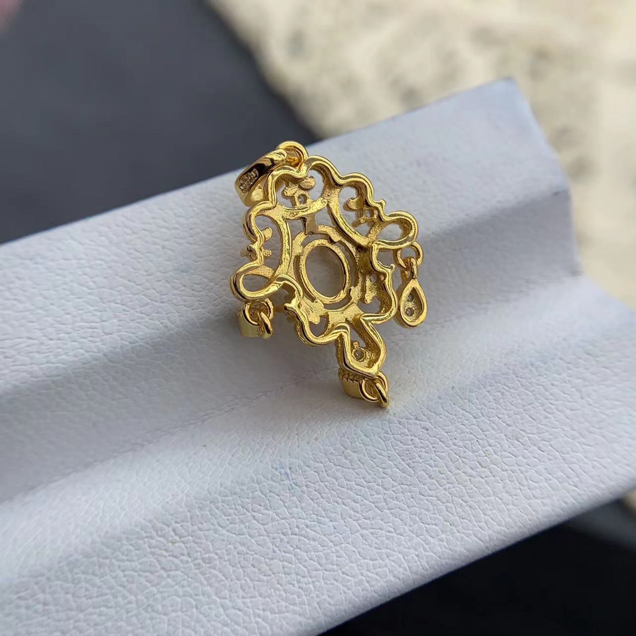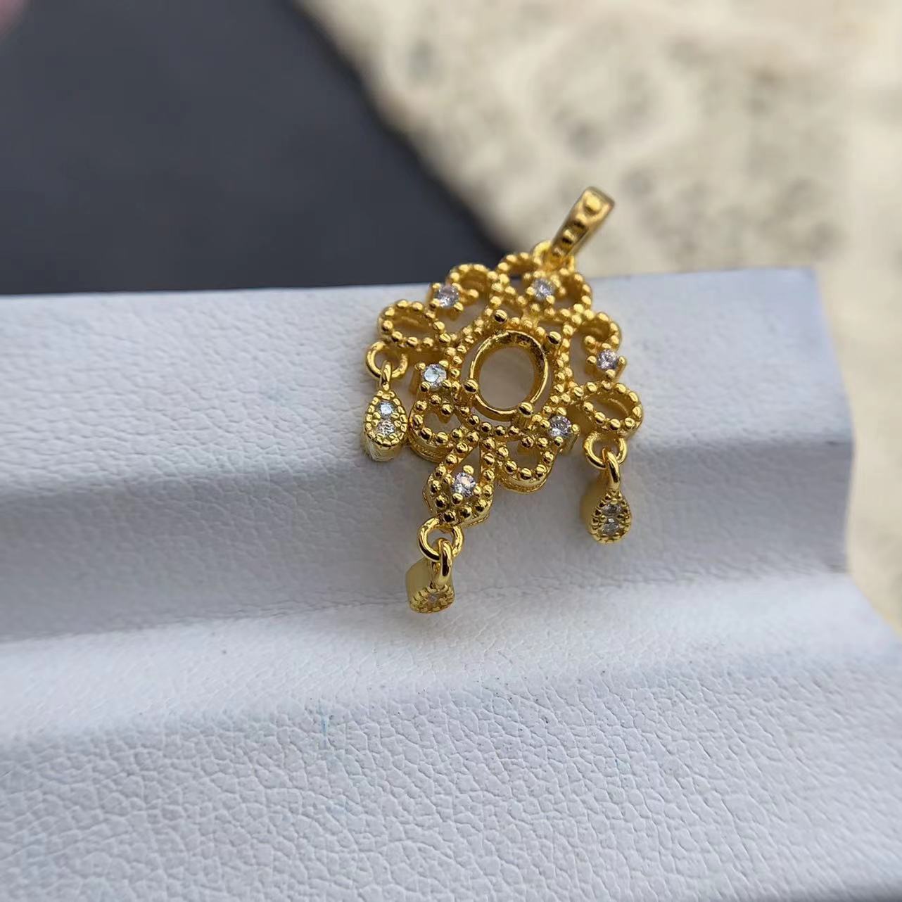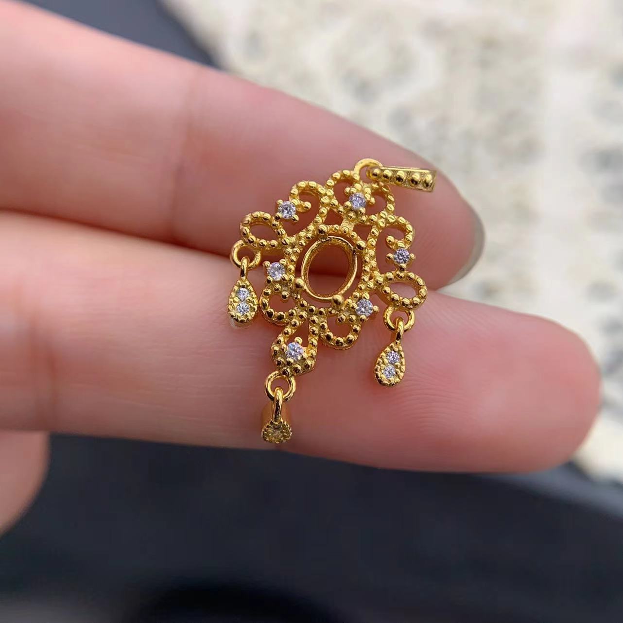 S925纯银吊坠空托椭圆形4*5mm精致复古高贵轻奢小众贵气钻石点缀