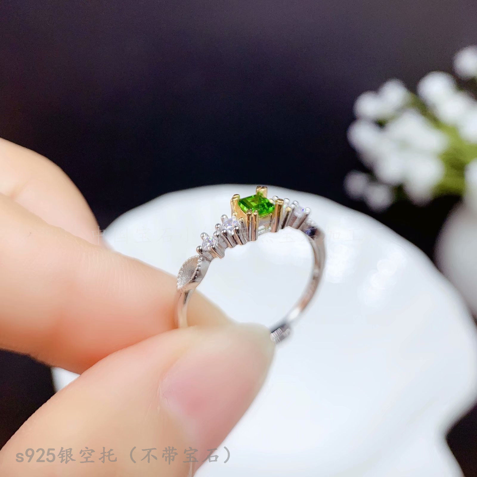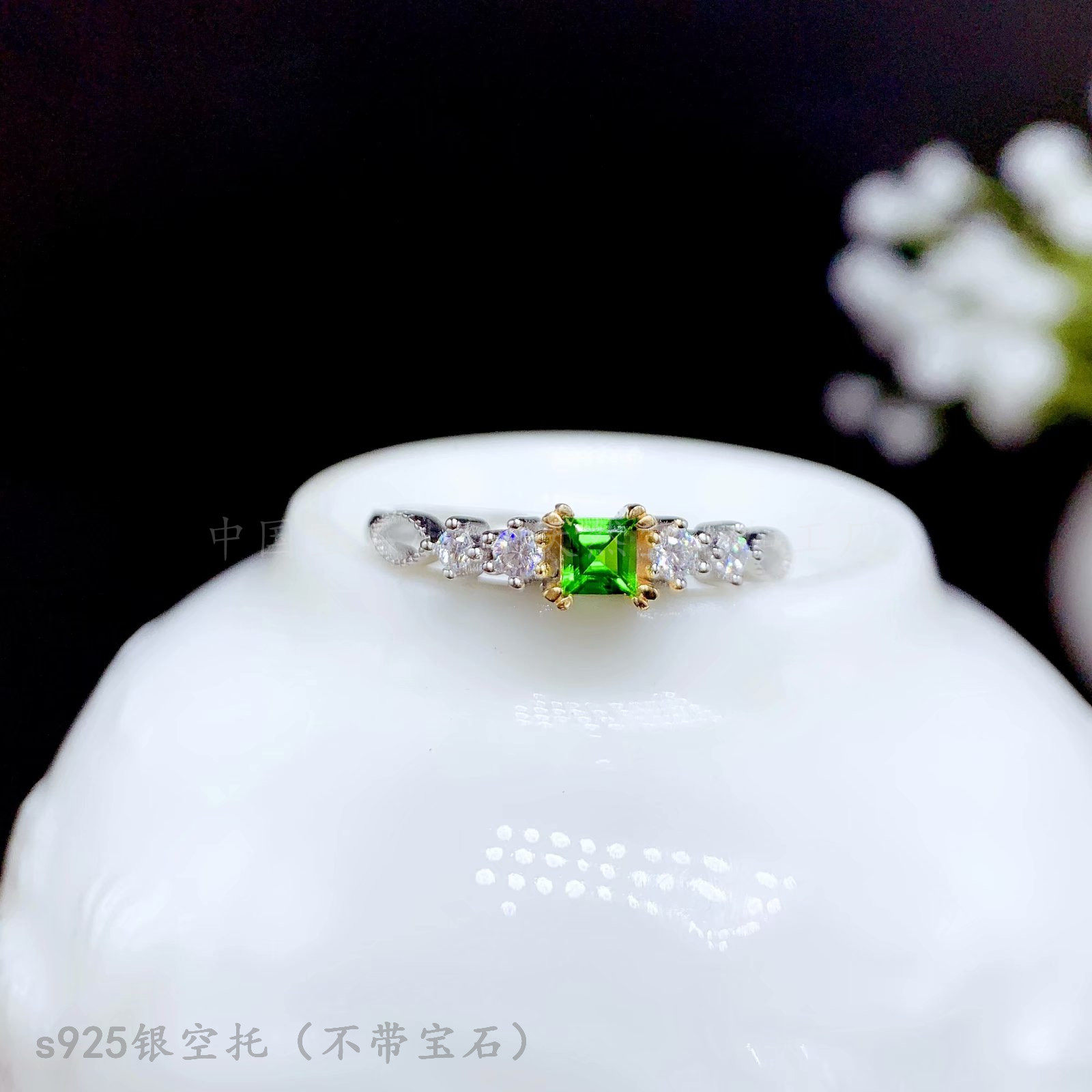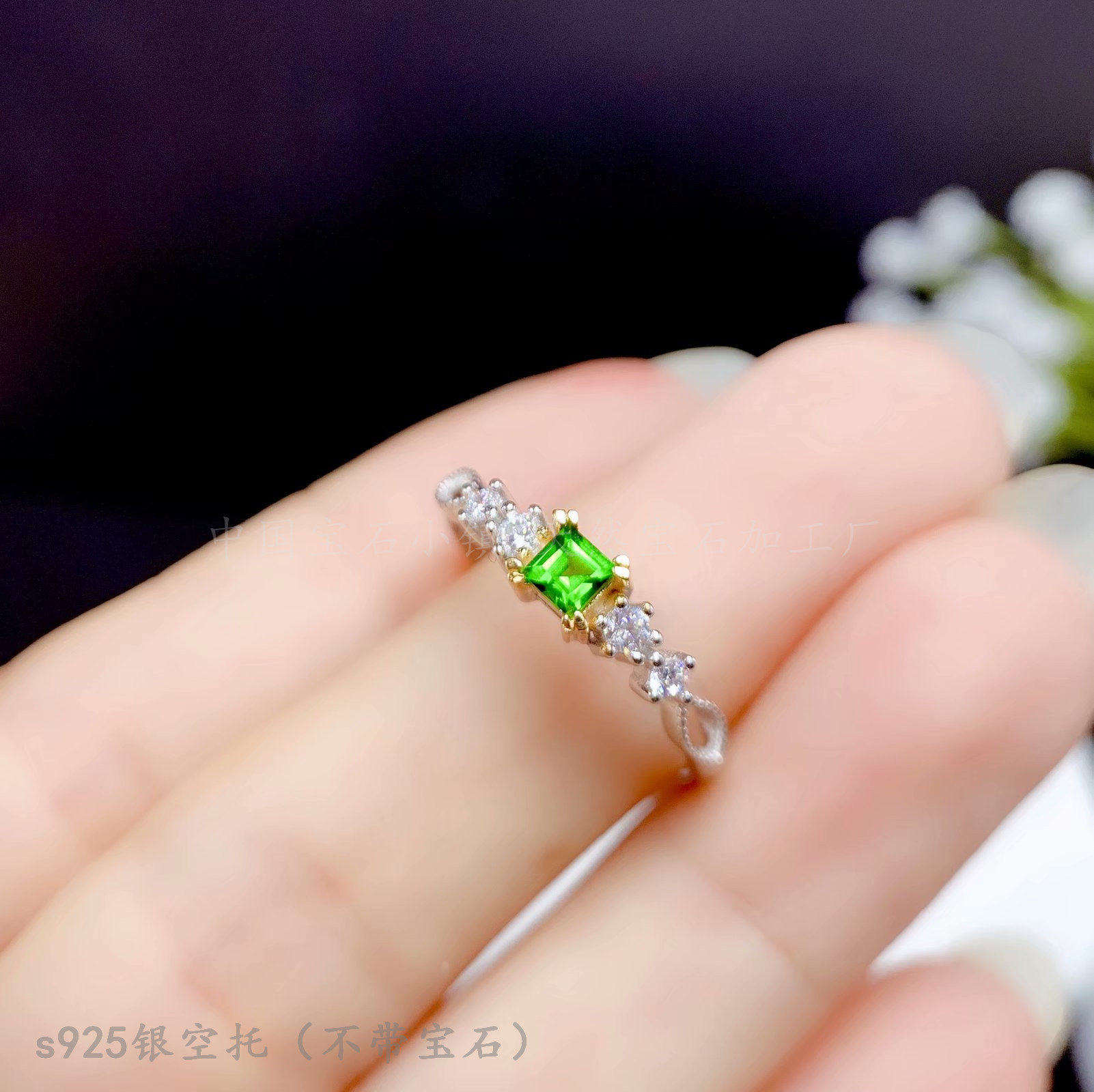 s925纯银戒指空托 正方形3*3 4*4 5*5mm镶钳透辉石 晶石简约时尚