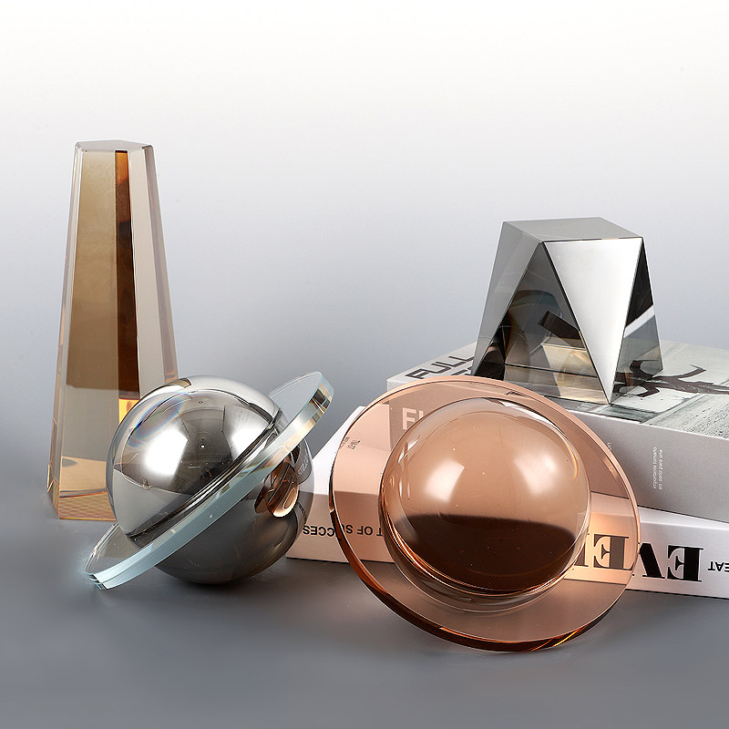 简约现代创意抽象K9星球飞碟几何装饰球水晶玻璃客厅桌面家居摆件
