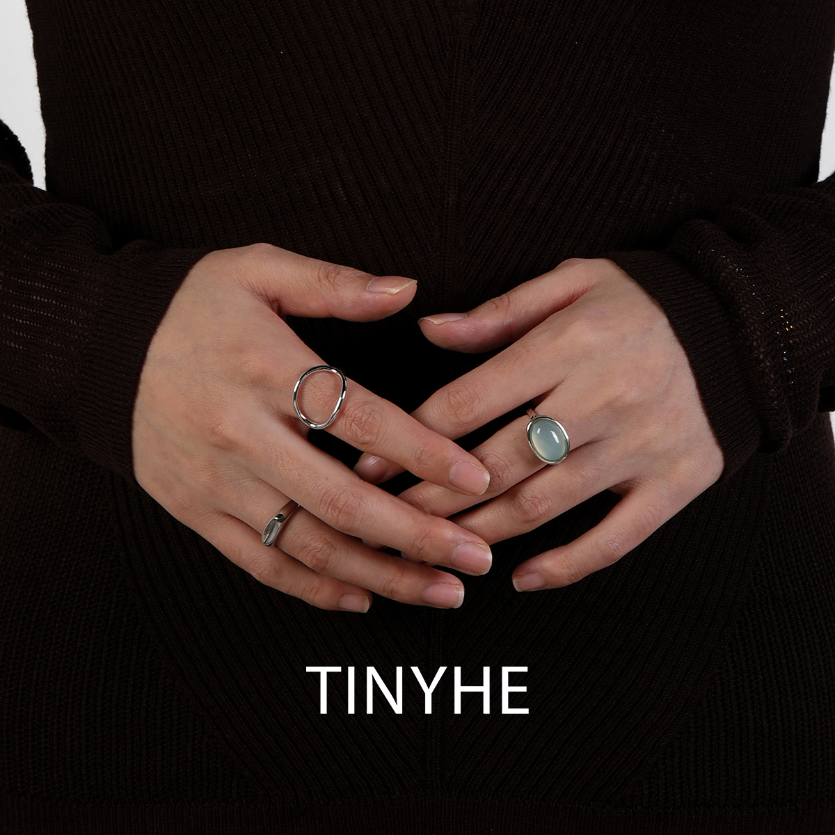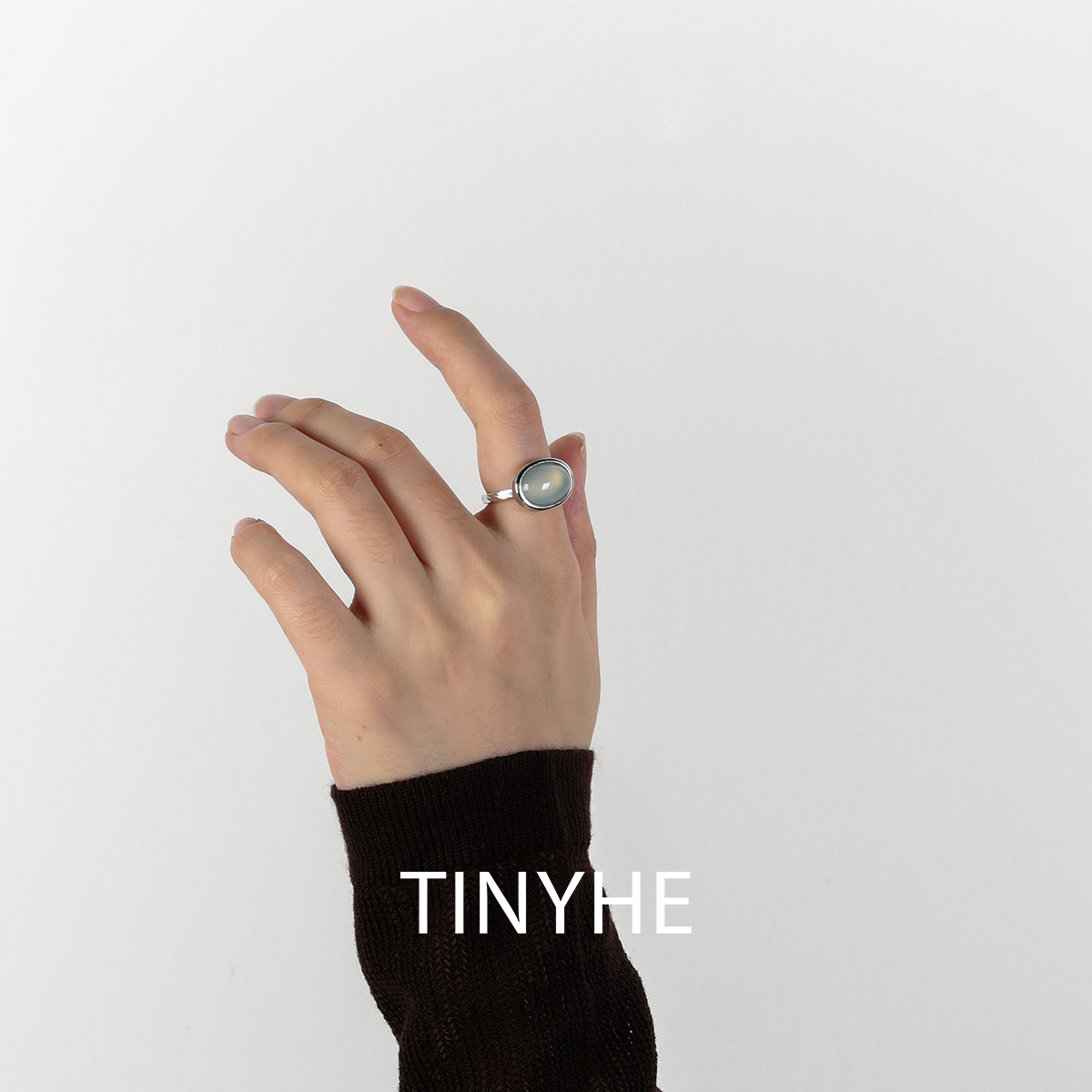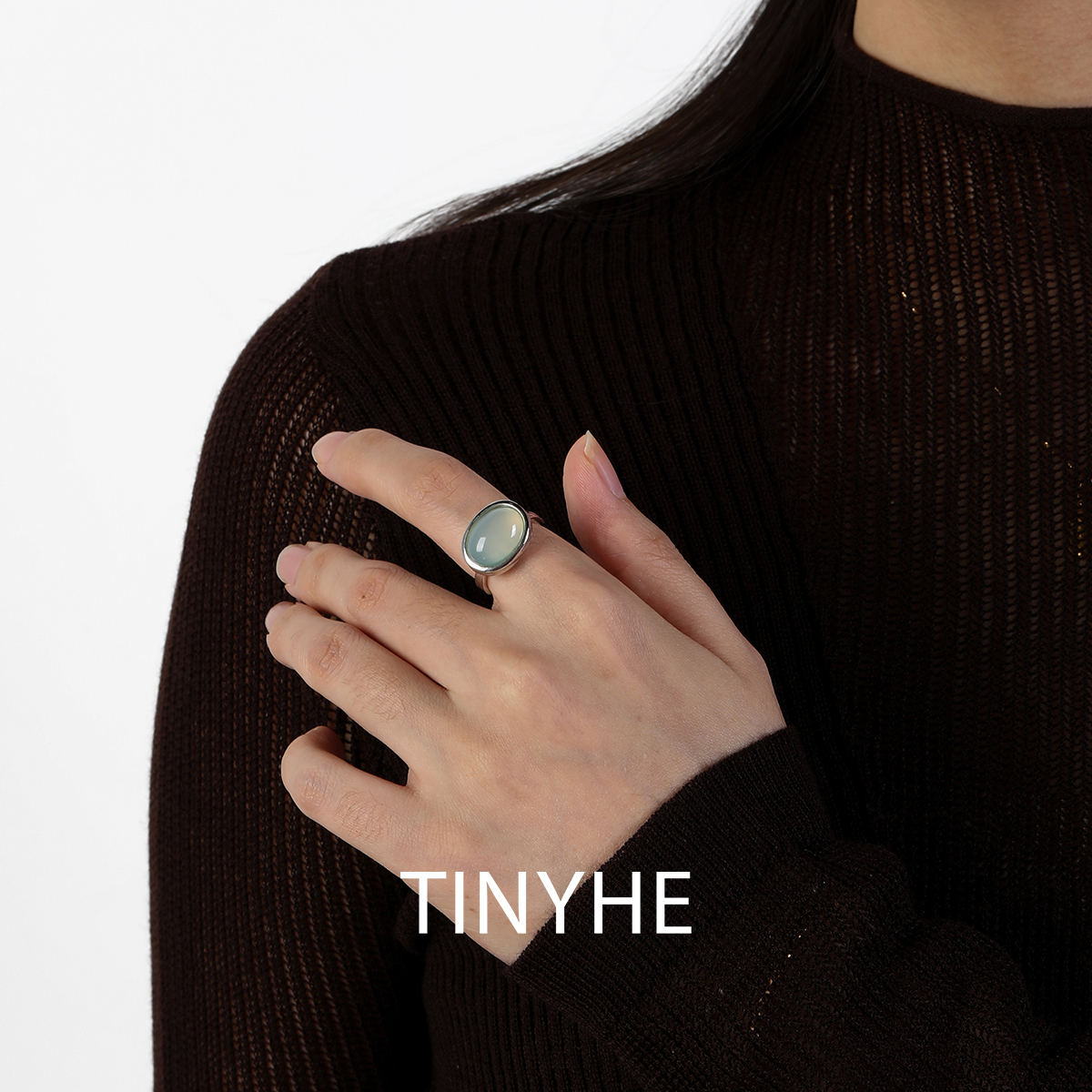 TINYHE米雪 999纯银白玉髓开口戒指女款椭圆玉石复古可调节食指戒