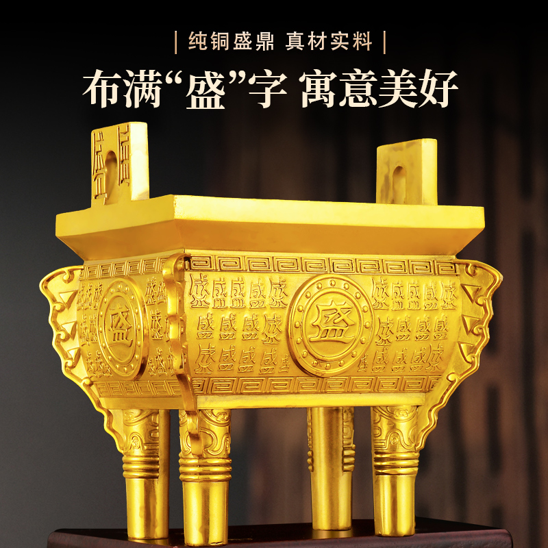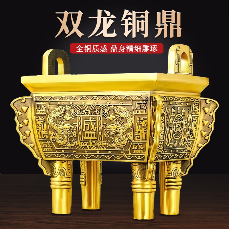 黄铜摆件四方鼎双龙盛鼎大号家用店铺办公室装饰品鼎盛千秋送礼