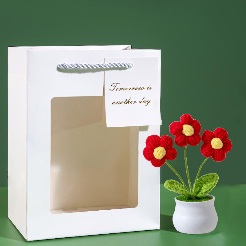 手工编织毛线花束仿真花盆摆件适合送亲人妈妈女友学生