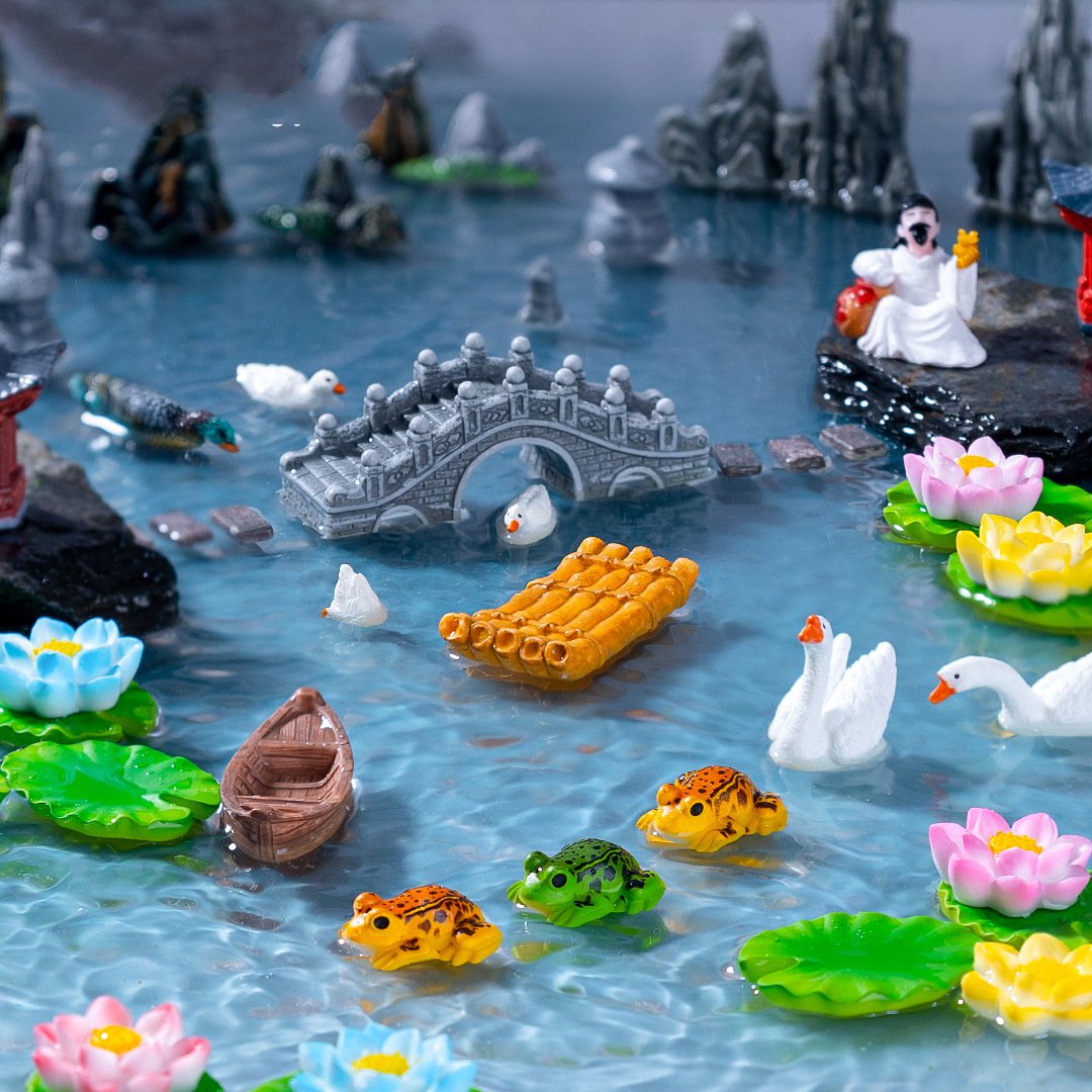 仿真可漂浮小船竹筏荷花荷叶 微景观鱼缸水族造景青蛙微缩小摆件