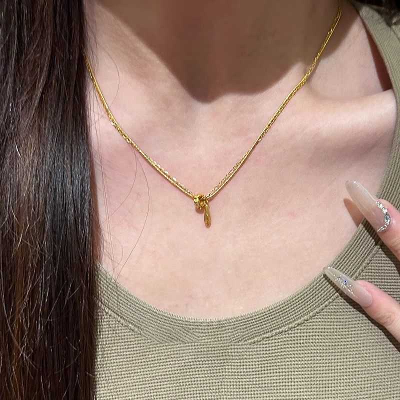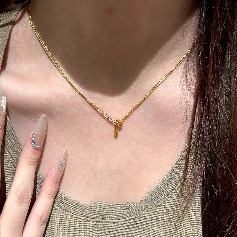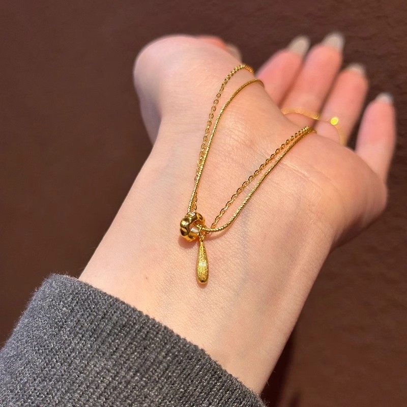 清冷感金色水滴转环项链小众轻奢气质锁骨链复古简约精致百搭颈链