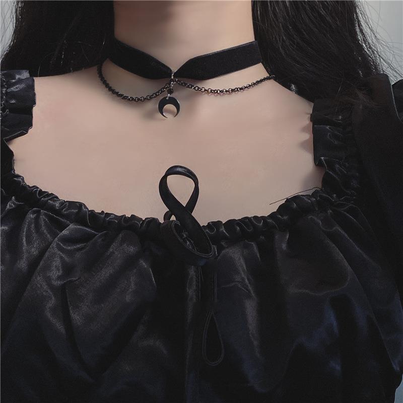 哥特风月牙choker颈链暗黑色项圈女颈带锁骨链辣妹脖子配饰颈环