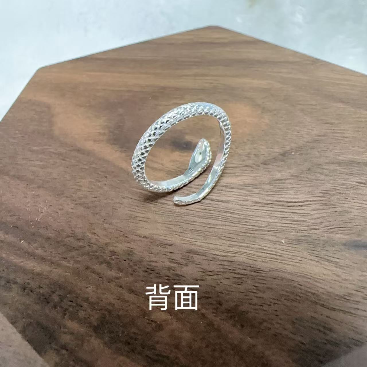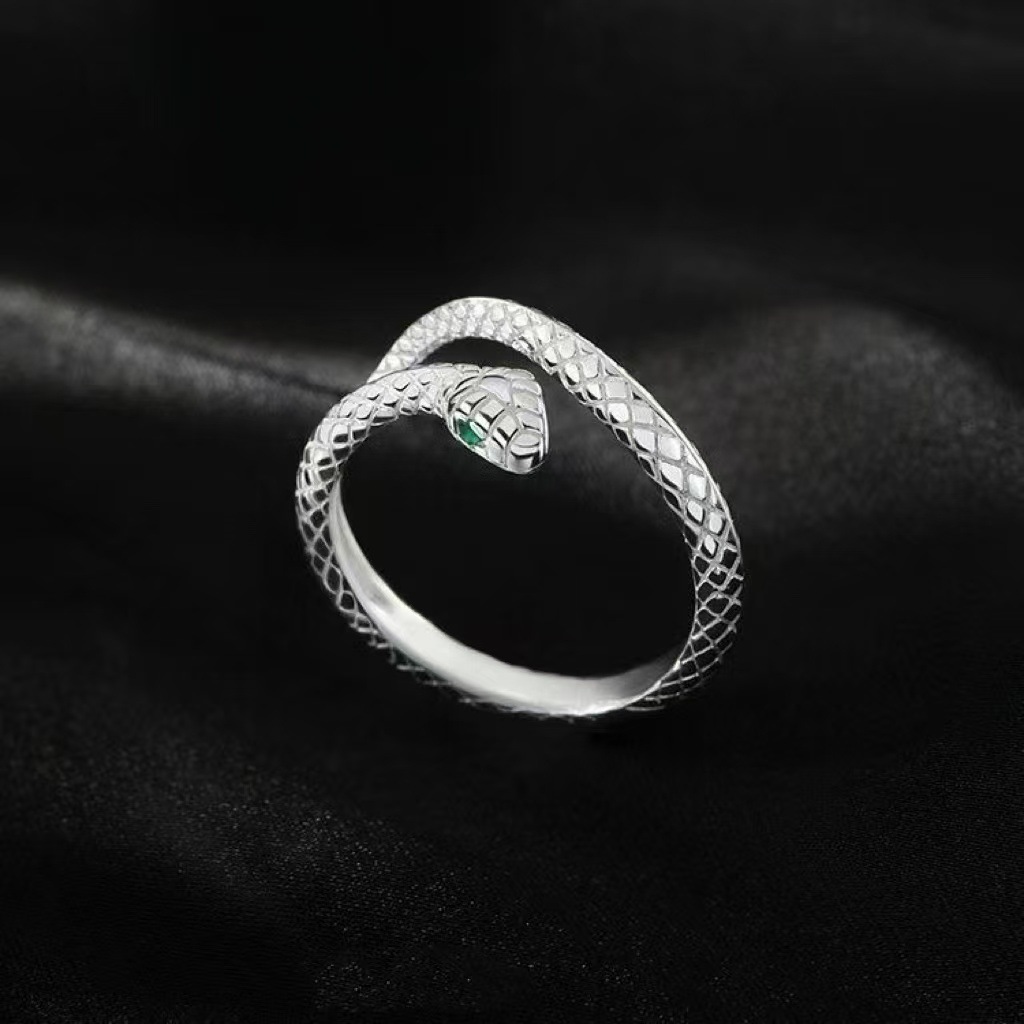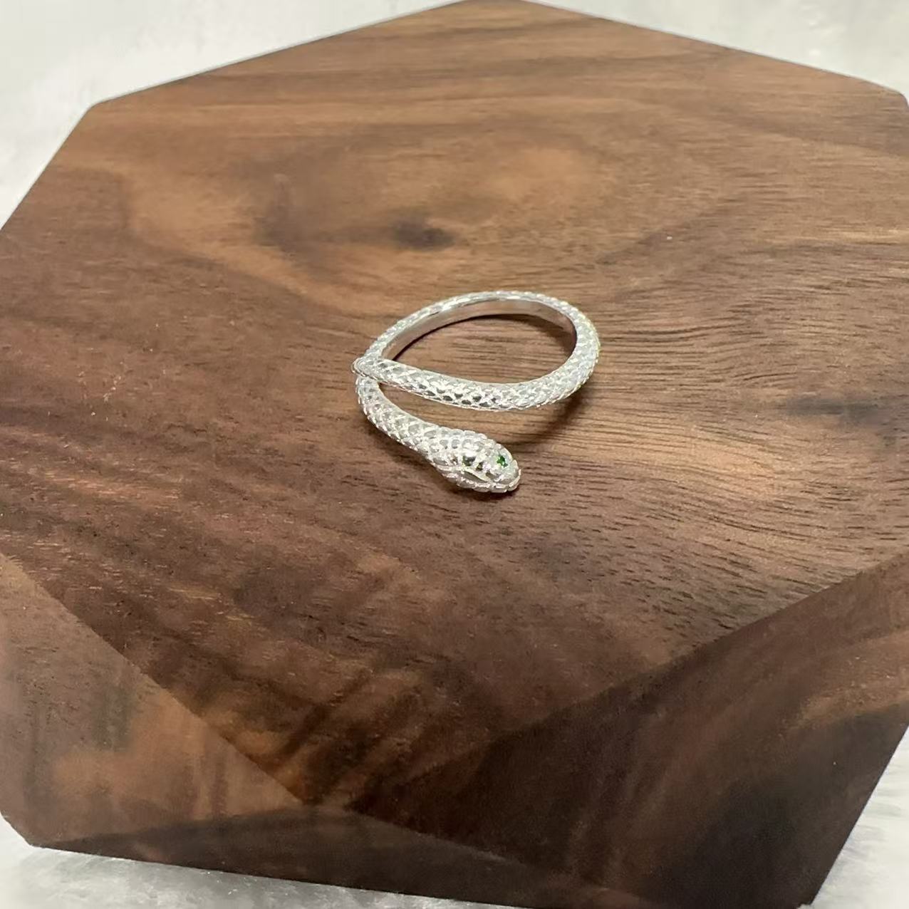 时尚潮流经典轻奢银色绿眼灵蛇戒指简约个性开口可调节创意指环圈