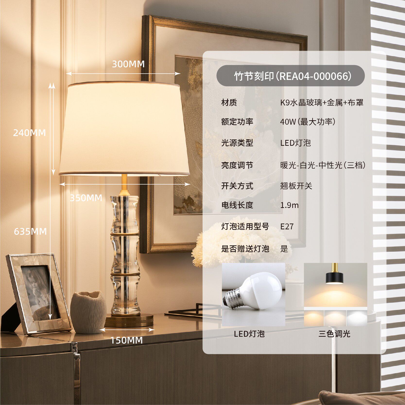 美克美家Rehome轻奢竹节水晶台灯客厅书房主卧欧式奢华暖色床头灯