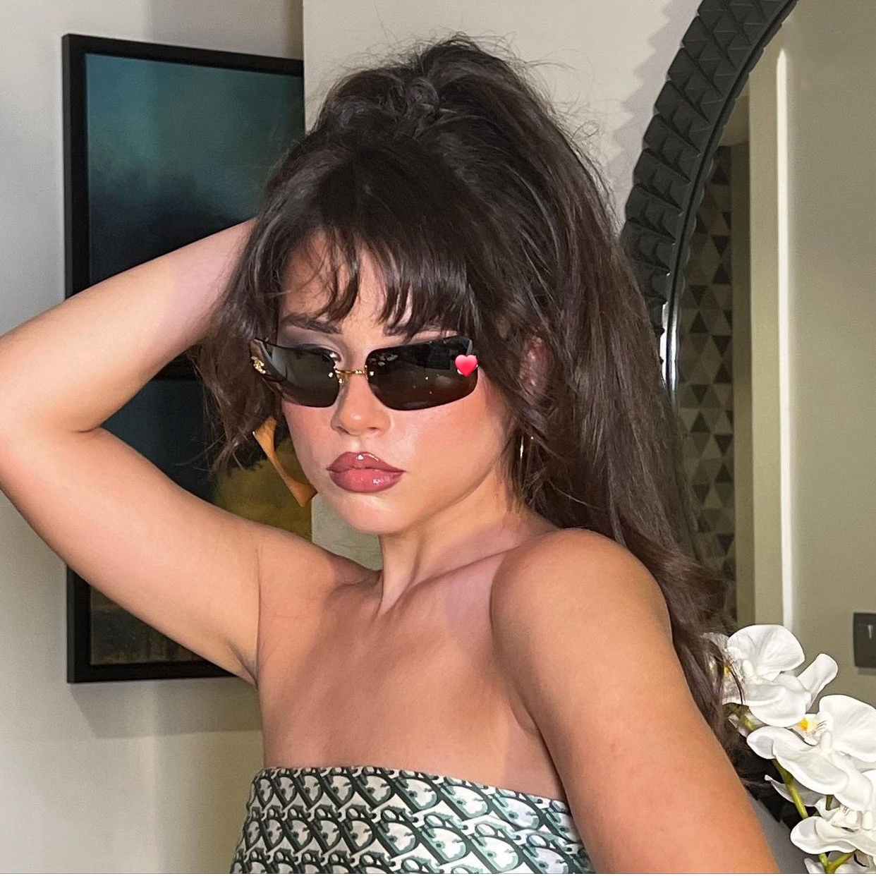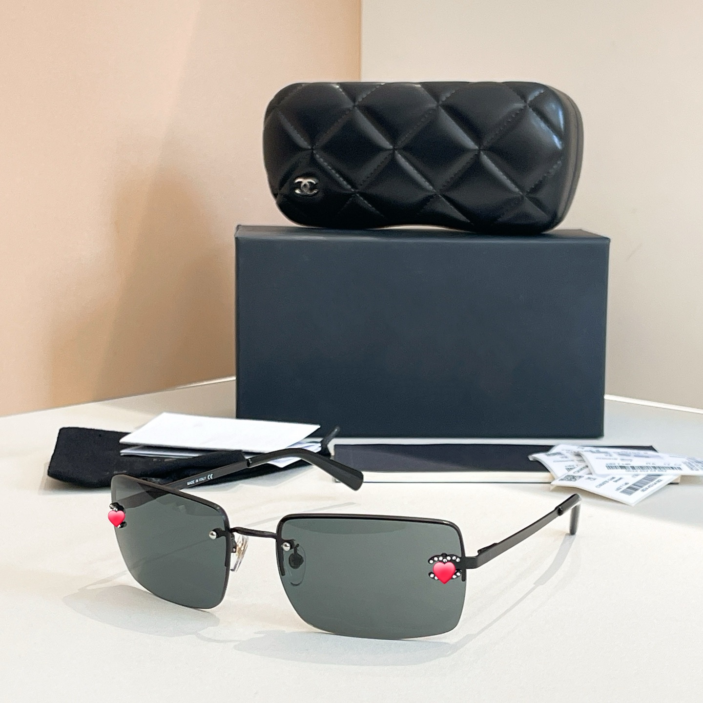 2025年jennie同款复古中古水钻无框太阳眼镜女镜片防紫外线墨镜