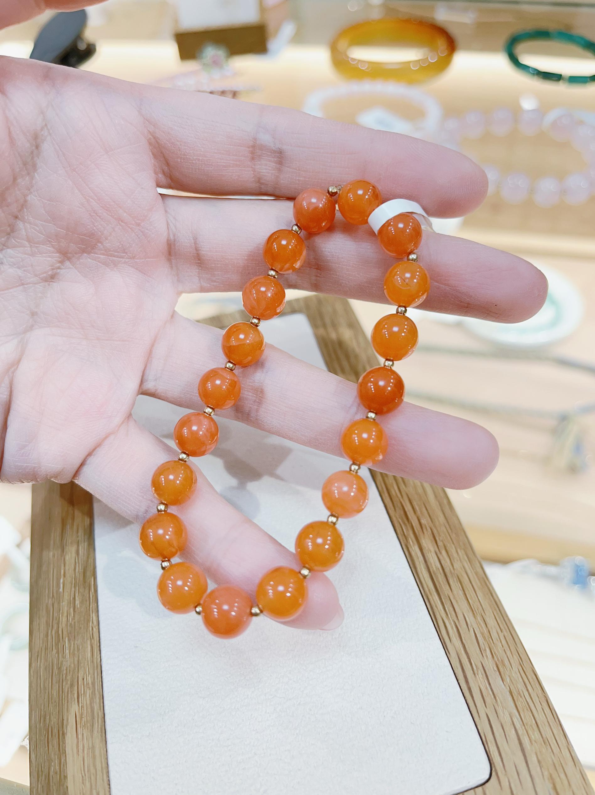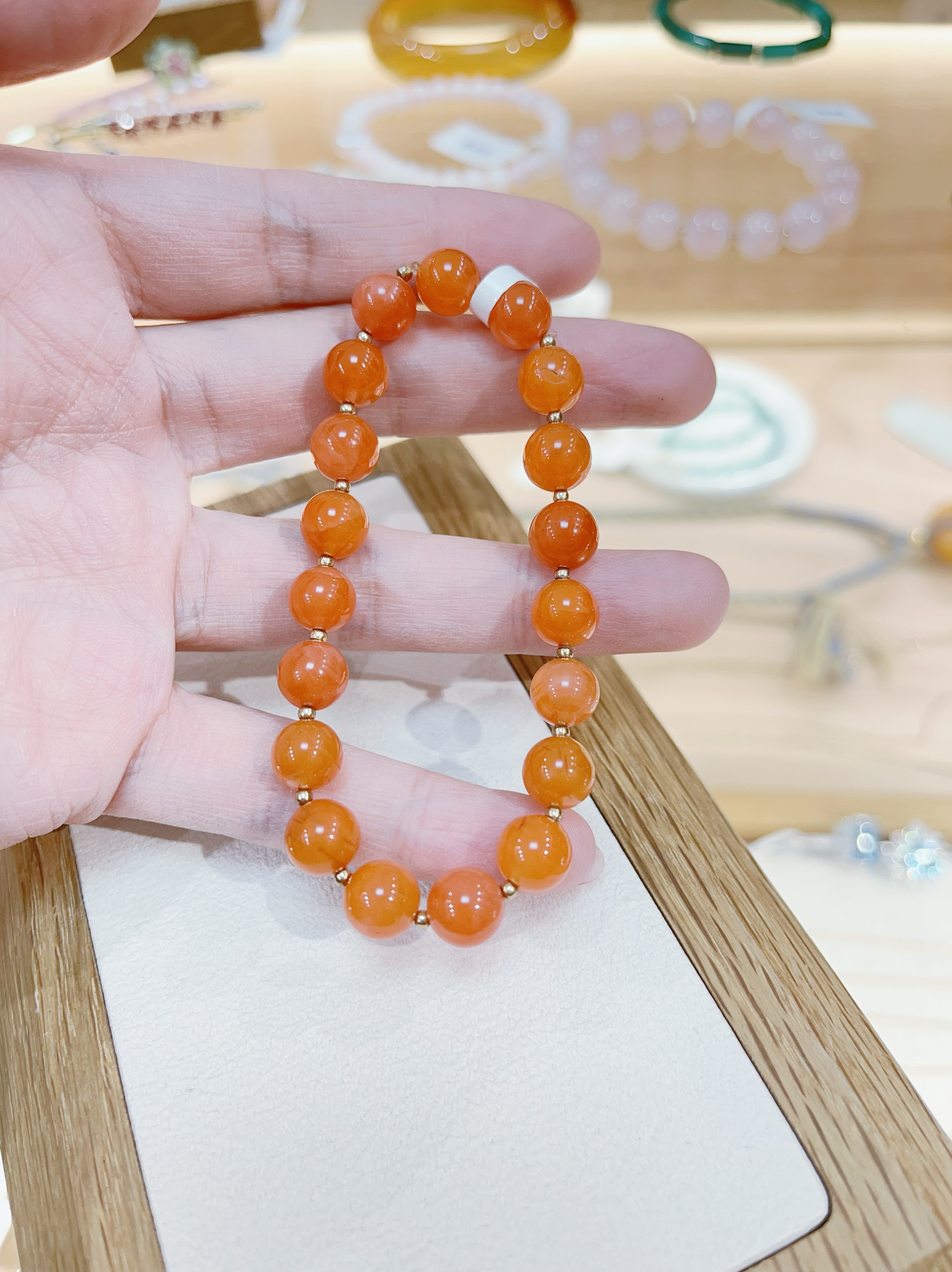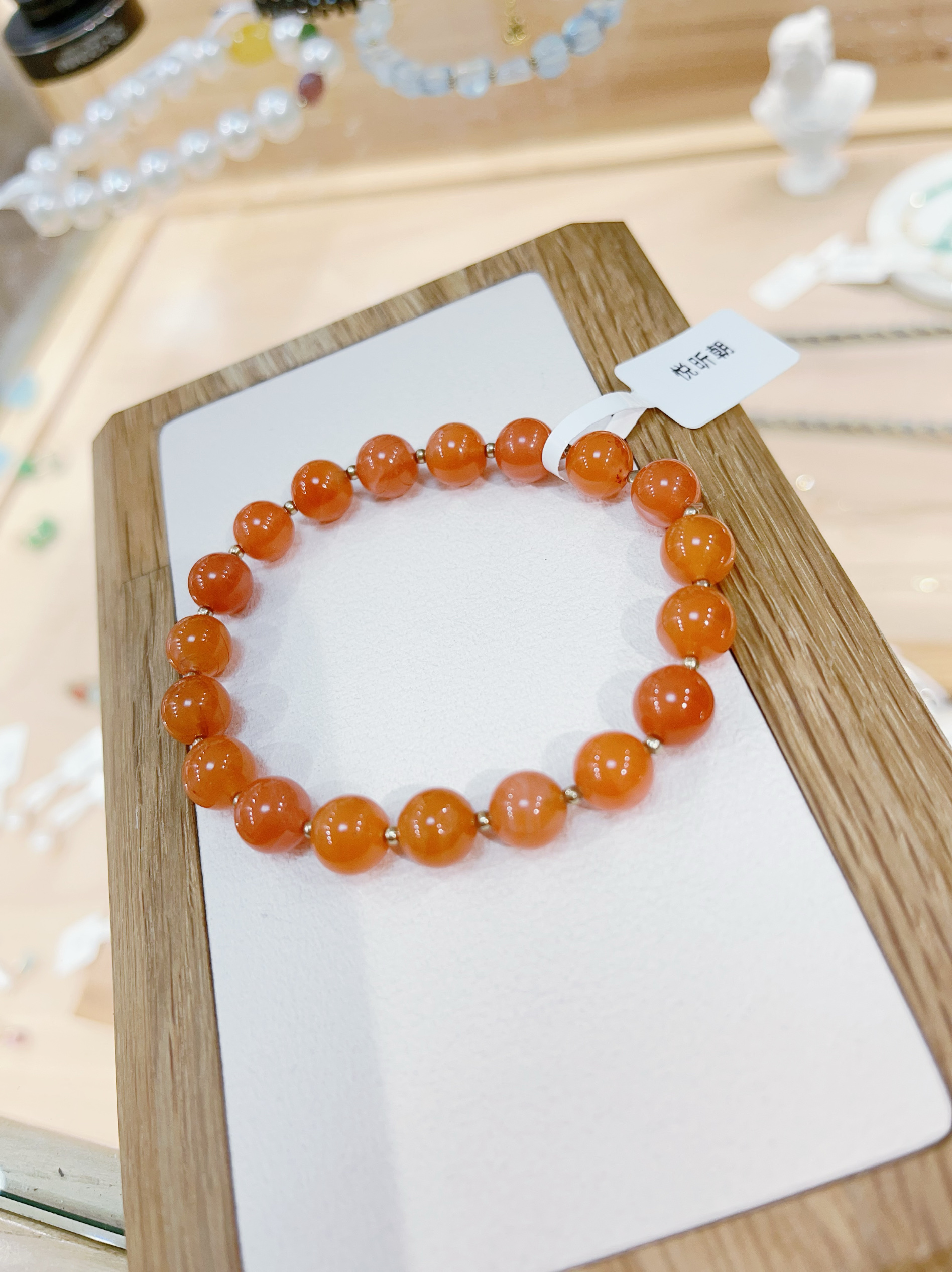天然南红玛瑙手链女款单圈手串送女友礼物14k包金转运珠原创8mm