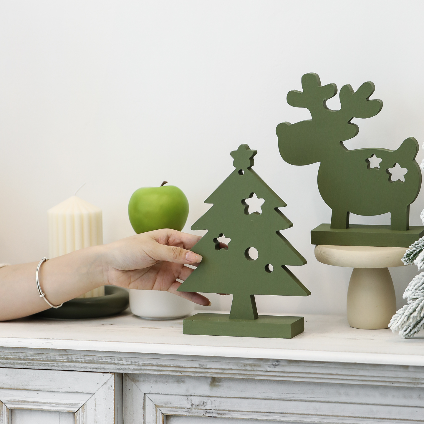 仿真圣诞树装饰摆件 家居软装墨绿色小鹿装饰品 圣诞节仪式感麋鹿