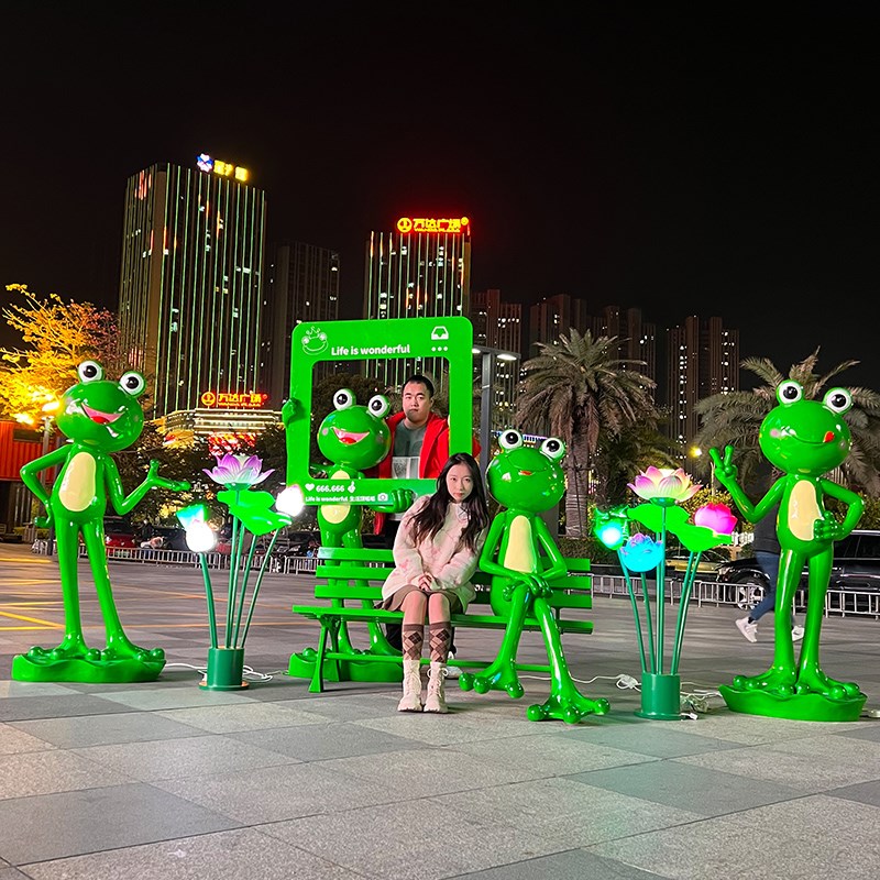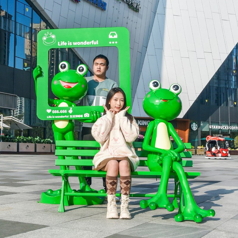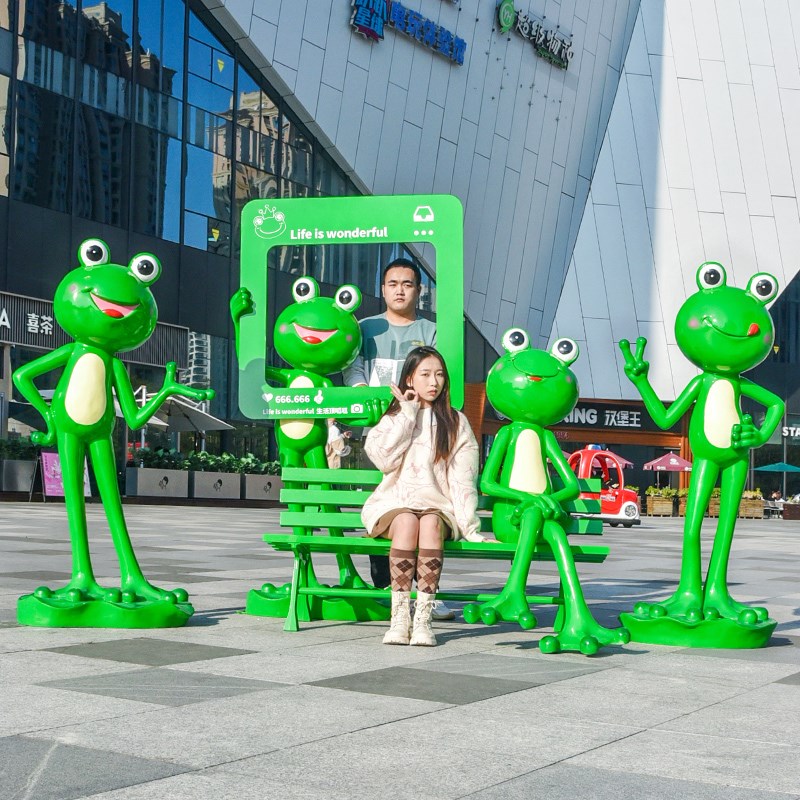 户外卡通青蛙玻璃钢雕塑牛蛙店模型大G型美陈摆件网红打卡迎宾装
