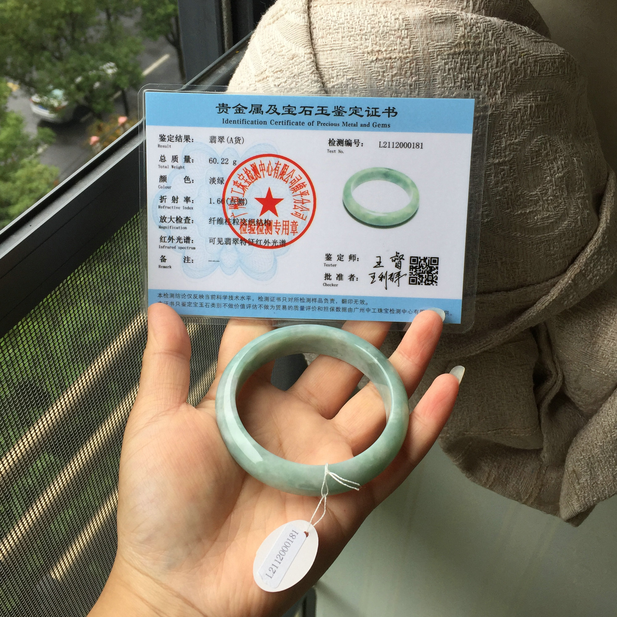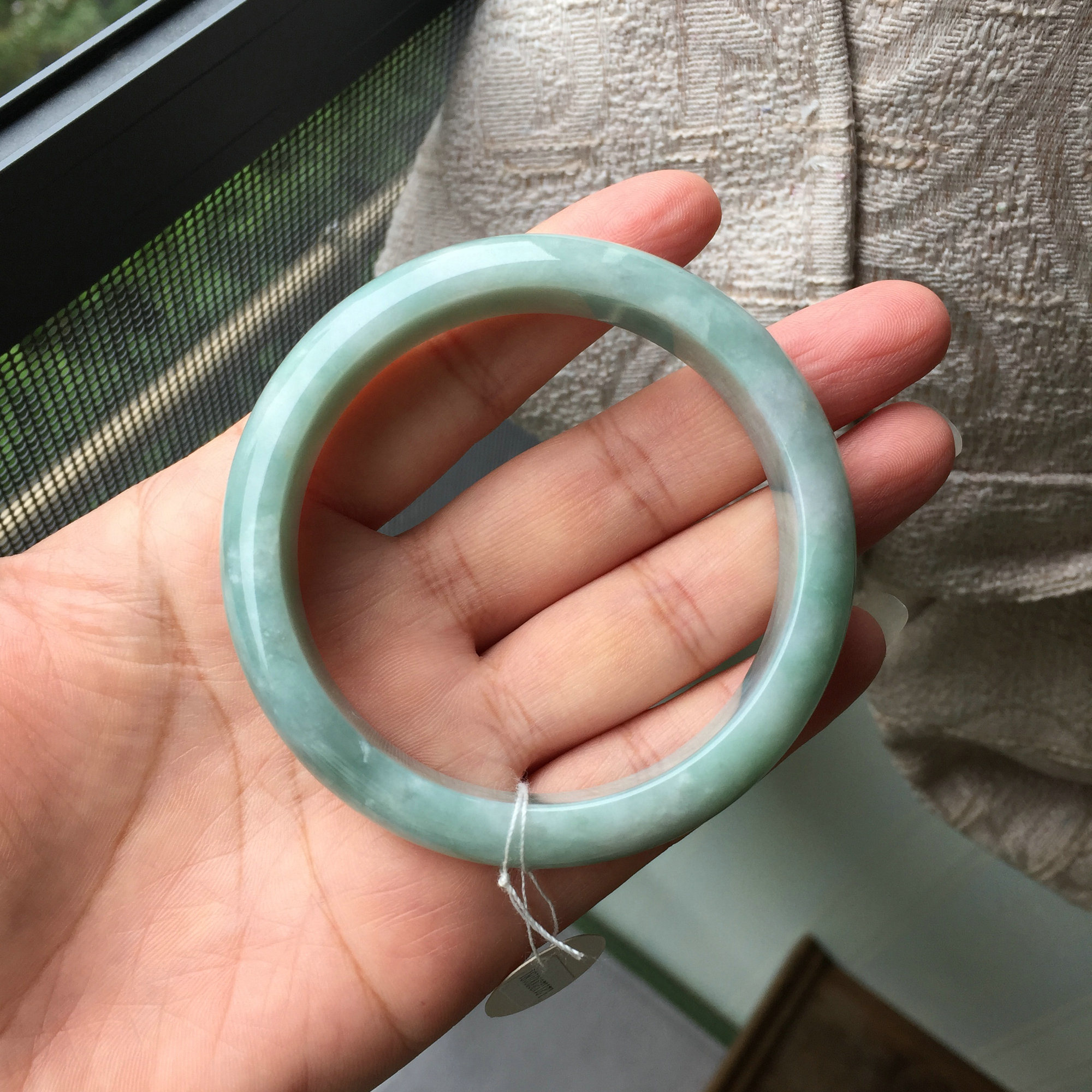 圈口约57.7mm入门瑕疵款 天然A货缅甸料翡翠手镯正圈玉石镯子宽条