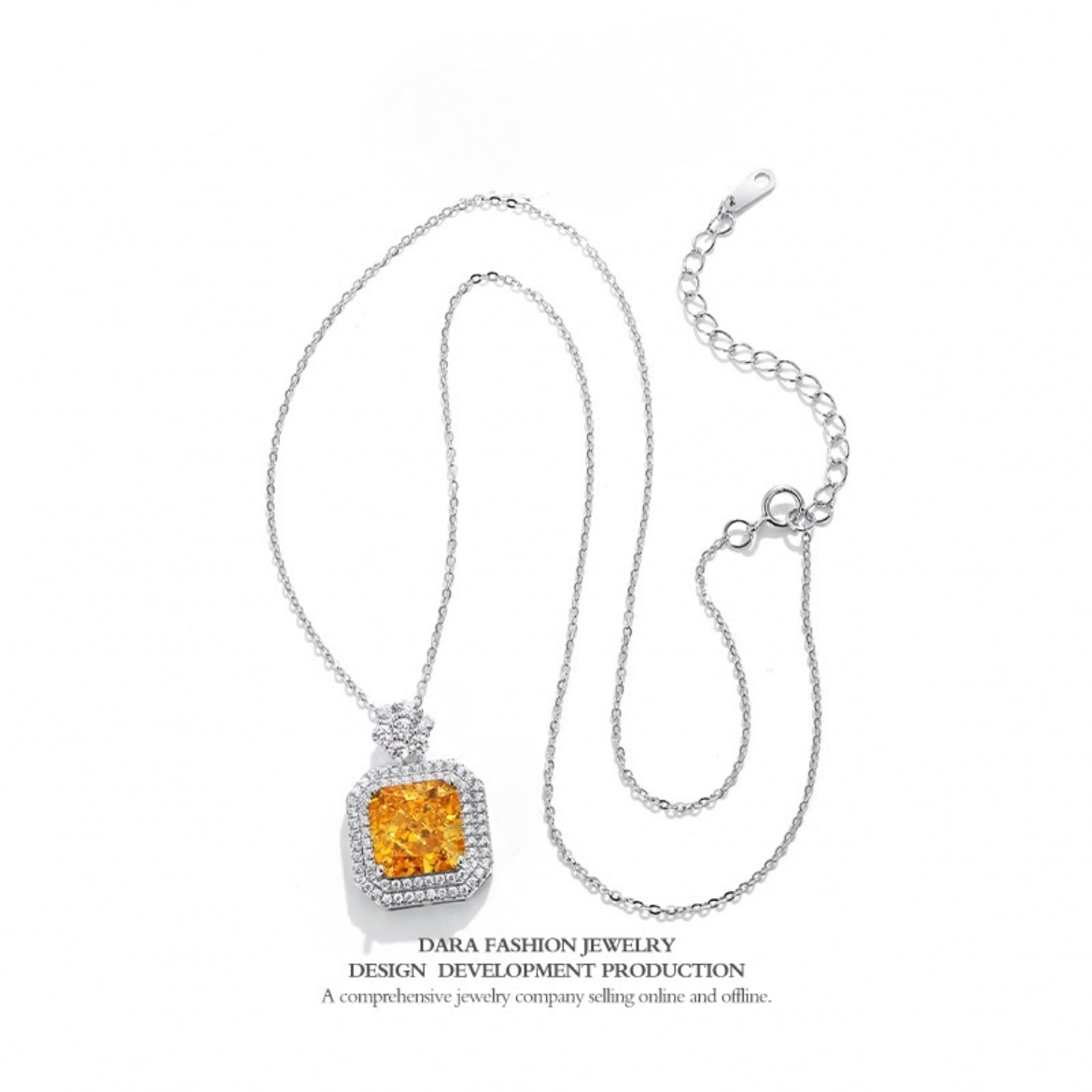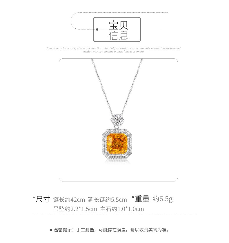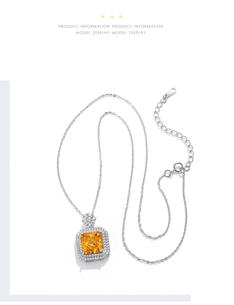 s925银方形黄色钻石项链时尚气质高雅奢华高级感锁骨链高贵复古