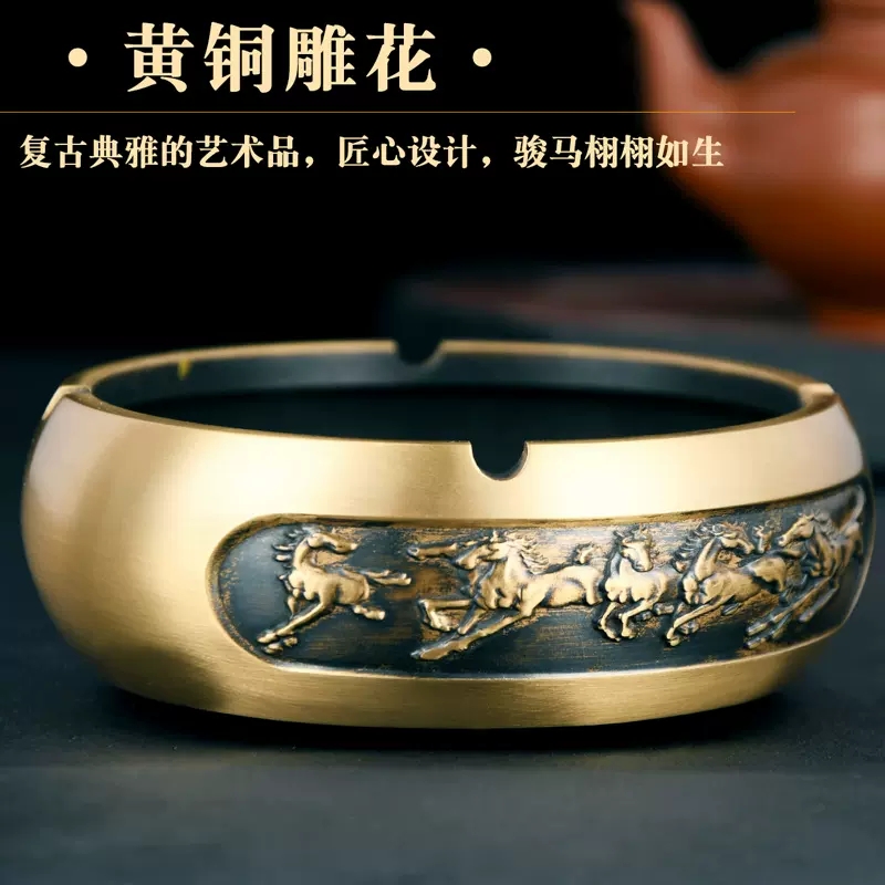 速发烟灰缸家用客厅新中式国潮黄铜创意烟缸高级办公室高端大气收