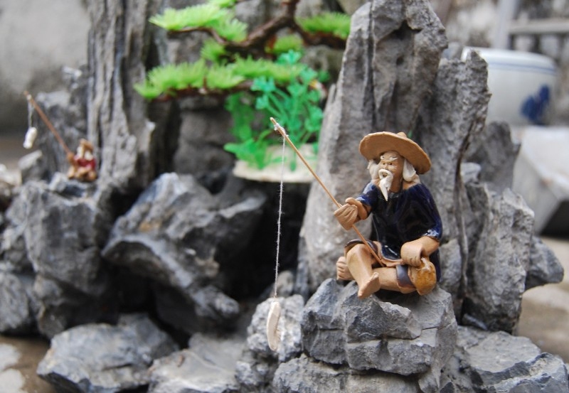 姜太公钓鱼夫假山盆景陶瓷小摆件鱼缸水族造景吸水石装饰庭院创意