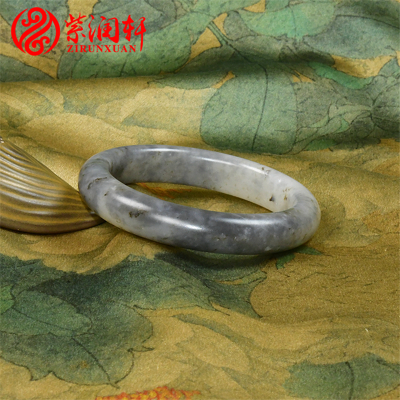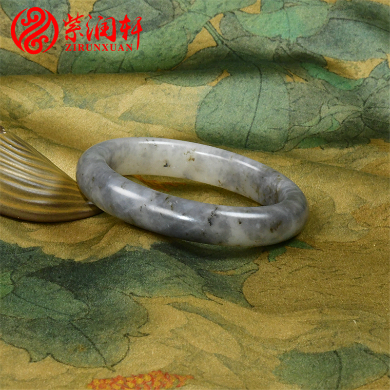 紫润轩新疆和田玉山流水手镯白底水墨青花水草沁花亚光55MM收藏级