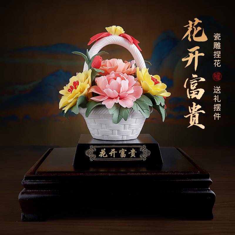 花开富贵牡丹花花篮装饰摆件办公室公司活动送礼开业礼物乔迁礼品