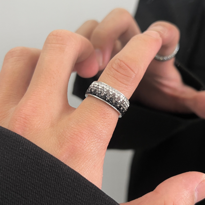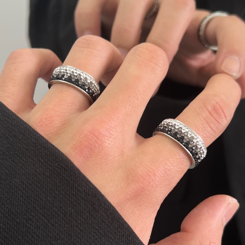 昼夜 满钻戒指男款冷淡风单身戒女ins小众设计钛钢不掉色指环尾戒