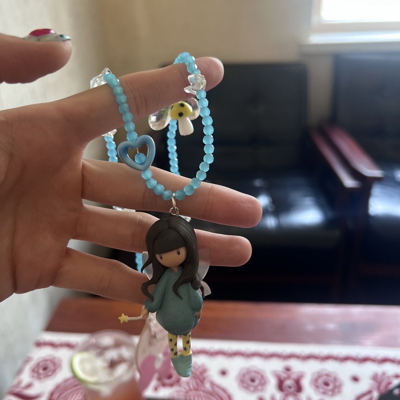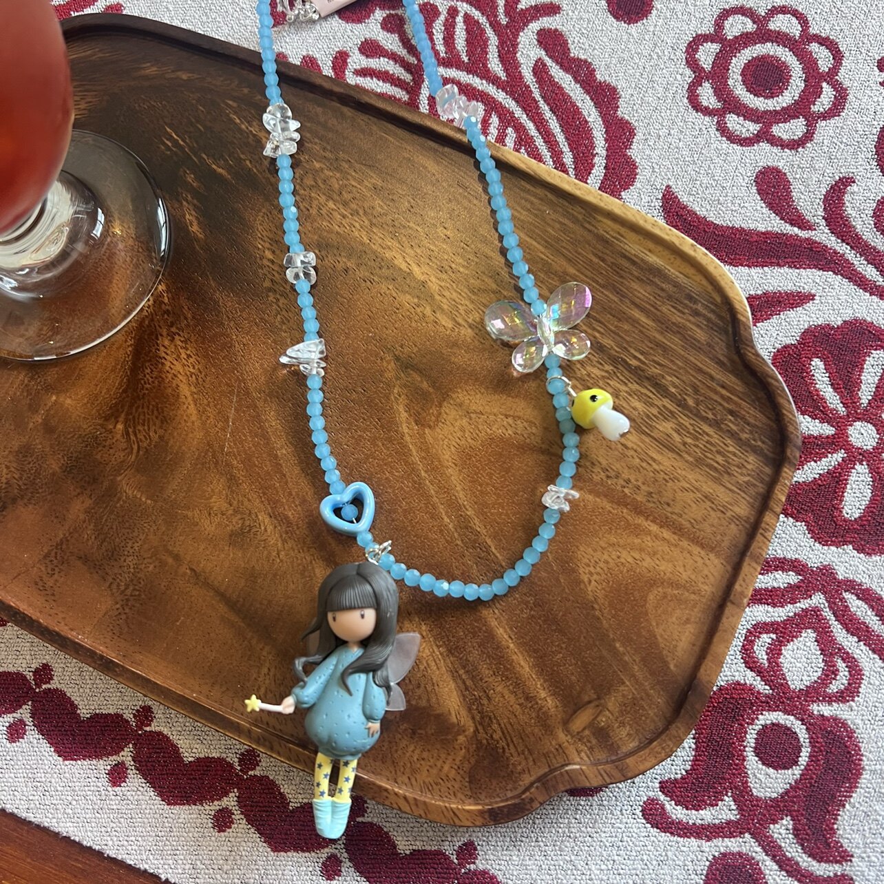 日韩水晶串珠可爱蓝色系花仙子女孩少女心仙女卡通短款项链颈链女
