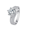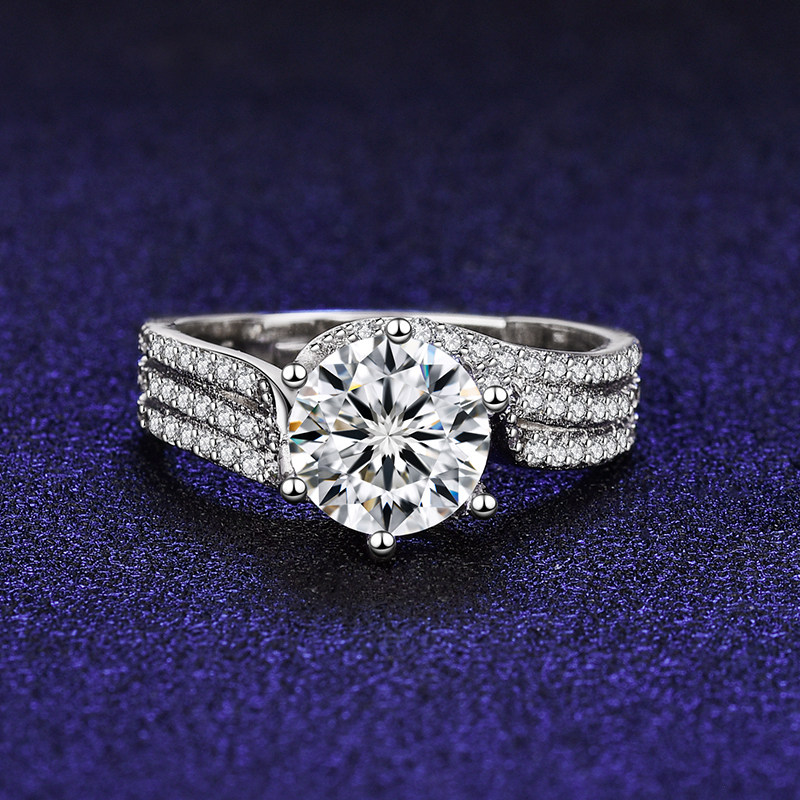纯银2克拉鸽子蛋三世情缘戒指女仿真莫桑石三排满钻线条指环钻戒